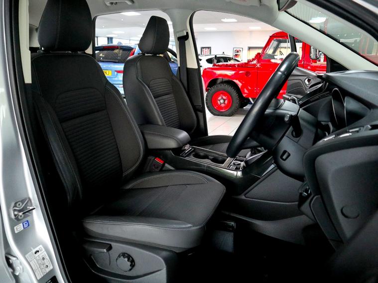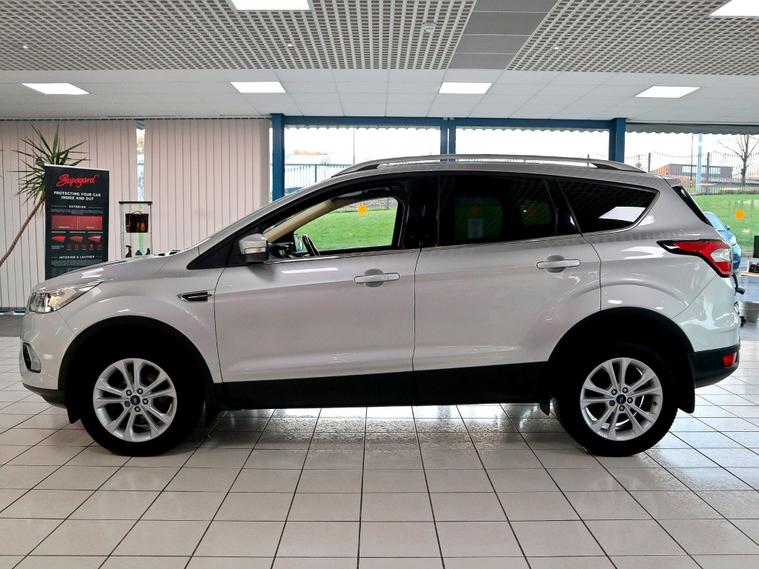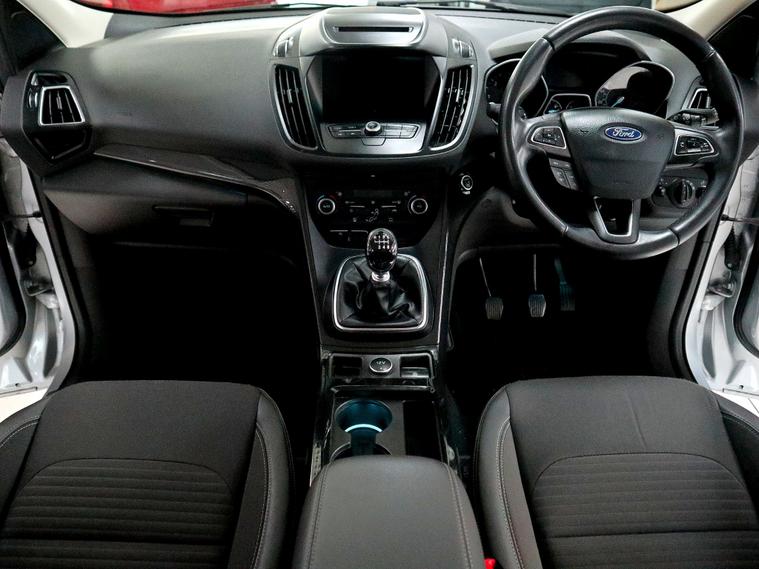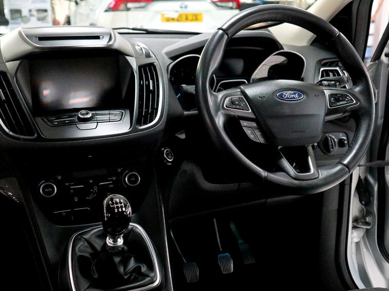 Practical, refined and ready for everyday adventures, this Kuga Titanium blends comfortable cabin appointments with modern connectivity and efficient performance. The well-equipped interior features half-leather seats and climate control for a comfortable journey in all seasons, while the heated front screen and cruise control add convenience for chilly mornings and long motorway runs. Tech-savvy drivers will appreciate the built-in satellite navigation alongside Apple CarPlay and Android Auto plus Bluetooth, making it simple to stream music, take calls and follow directions through a familiar smartphone interface. Safety and parking are made easier with rear parking sensors, and traction control brings extra confidence when the road conditions are less predictable. Under the bonnet sits an economical 1.5-litre TDCi matched to a smooth six-speed gearbox, delivering a pleasing balance of fuel efficiency and responsive performance for urban commutes and weekend trips. The exterior wears an attractive Moondust Silver premium metallic finish that lifts the look with a subtle, contemporary sheen and is one of the higher-spec paint options. Practical touches such as electric windows, electric mirrors and central locking contribute to everyday usability, while alloy wheels complete the polished appearance. If you're looking for a compact SUV that feels more premium than its size suggests - with thoughtful tech, comfortable trim and a sensible, economical drivetrain - this model offers a well-rounded package that suits families and commuters alike. LOOKING FOR SOMETHING SIMILAR? We have another 323 vehicles available on our website! Please contact us for more details.