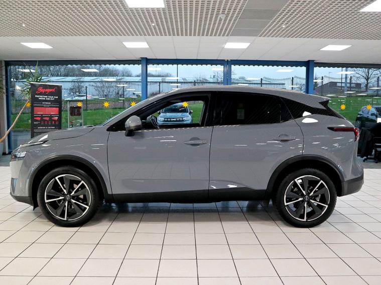 This Nissan Qashqai Tekna blends practical family-friendly space with refined technology and an efficient mild-hybrid powertrain to deliver a confident, comfortable drive. The cabin is bright and airy thanks to the panoramic sunroof, while half leather seating and heated front seats add a touch of luxury and year-round comfort. Everyday convenience is covered with climate control, a heated front screen for frosty mornings, and electric mirrors and windows that make city life easier. On the tech side this vehicle impresses: integrated satellite navigation, Apple CarPlay and Android Auto keep your routes and apps seamlessly connected, while Bluetooth and a clear park cam with parking sensors make manoeuvring and hands-free calls straightforward. With 155.6 bhp the engine provides responsive performance for motorway cruising and quick overtakes, yet the mild-hybrid assistance helps achieve a combined 44.1 mpg and keeps CO2 emissions down to 144 g/km. Safety and control features like traction control and cruise control help reduce driver fatigue on longer journeys, and the alloy wheels add a smart, durable finish to the exterior. Having been with just one keeper, this Qashqai presents as a well-maintained, reliable example that balances practicality, economy and modern spec. It's ideal for those who want a stylish compact SUV with thoughtful creature comforts, contemporary connectivity and the fuel efficiency to keep running costs sensible. LOOKING FOR SOMETHING SIMILAR? We have another 323 vehicles available on our website! Please contact us for more details.