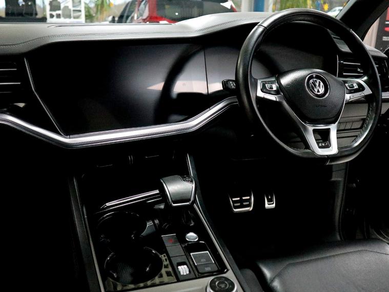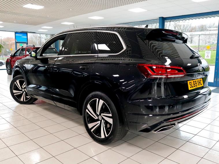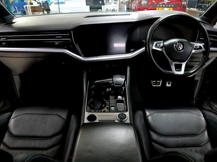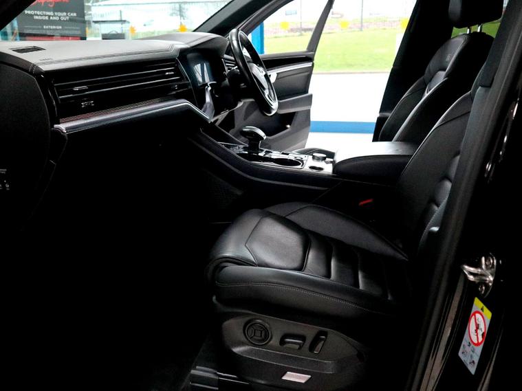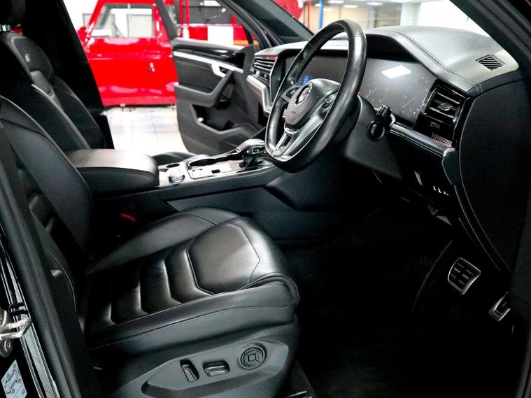 A compelling blend of muscular performance and refined comfort, this Touareg R-line stands out with its Deep Black Pearl Effect finish and commanding presence on the road. Beneath the hood the V6 TDI delivers an impressive 281.6 bhp, providing brisk acceleration (around 6.1 seconds to typical highway pace) while still returning a respectable combined 34 mpg and CO2 emissions of 173 g/km. Inside, the cabin is tailored for long journeys with sumptuous leather seating and heated front seats that add a touch of luxury, while climate control and cruise control keep every mile relaxed and effortless. Technology is thoughtfully integrated: satellite navigation, Apple CarPlay, Android Auto and Bluetooth ensure connectivity is seamless, and the park assist system with rear view camera plus parking sensors make manoeuvring in tight spaces straightforward. Practical conveniences such as keyless entry with hands-free tailgate opening, high beam assist and traction-controlled 4MOTION stability round out the package to make everyday driving simpler and safer. The combination of sporty R-line styling, alloy wheels and a high-spec equipment list gives this vehicle a premium feel without compromising versatility-perfect for those who want a comfortable family SUV that can also excite on open roads. With just one previous keeper and a specification that mixes driver-assist features, luxury touches and capable performance, this Touareg presents a confident, well-equipped option for anyone seeking a high-quality, practical yet dynamic SUV. LOOKING FOR SOMETHING SIMILAR? We have another 323 vehicles available on our website! Please contact us for more details.