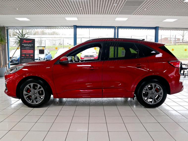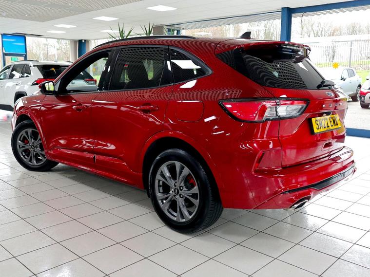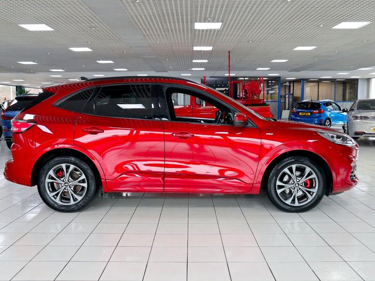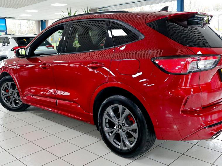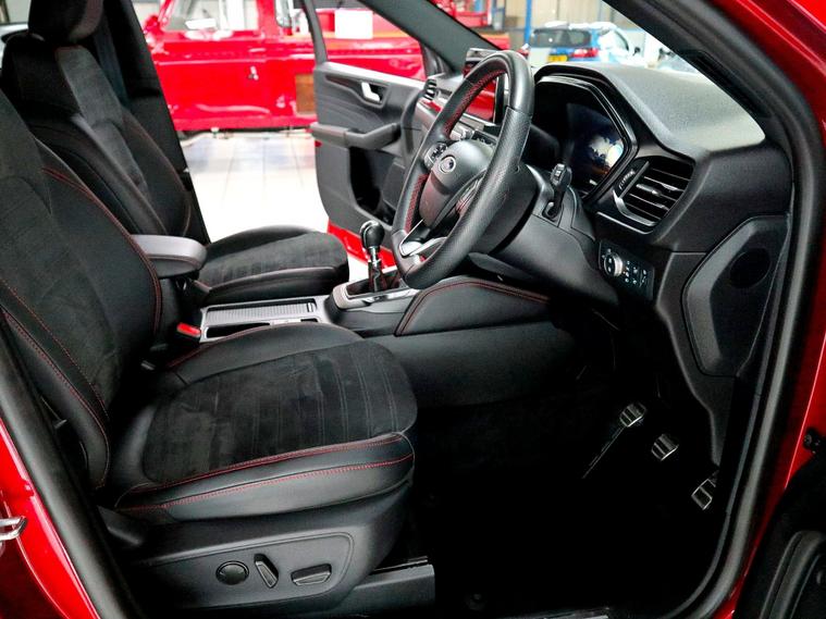 Stylish, practical and economical, this Kuga ST-Line combines smart engineering with everyday usability to deliver a comfortable and confident drive. Equipped with a 2.0 EcoBlue mild-hybrid powertrain, it strikes an impressive balance between performance and efficiency - producing around 148 bhp with combined fuel economy of about 55.4 mpg and CO2 emissions of 128 g/km, while sprinting to 62 mph in roughly 9.6 seconds. The interior feels premium thanks to half-leather seating and climate-controlled comfort, while modern connectivity is handled neatly with Apple CarPlay, Android Auto and built-in satellite navigation for seamless smartphone integration and route guidance. Practical touches such as parking sensors, a rear park camera and electrically adjustable mirrors make daily driving and parking straightforward, and the heated front screen is a welcome feature through the colder months. The six-speed transmission and traction control deliver a composed ride and sure-footed handling, with cruise control helping on longer journeys. Complemented by alloy wheels and a well-thought-out cabin layout, this vehicle is equally suited to family duties, commuting and longer trips. With just one keeper recorded, it presents a tidy ownership history and a compelling mix of style, tech and efficiency for anyone seeking a modern compact SUV with sensible running costs and a refined feel. LOOKING FOR SOMETHING SIMILAR? We have another 311 vehicles available on our website! Please contact us for more details.