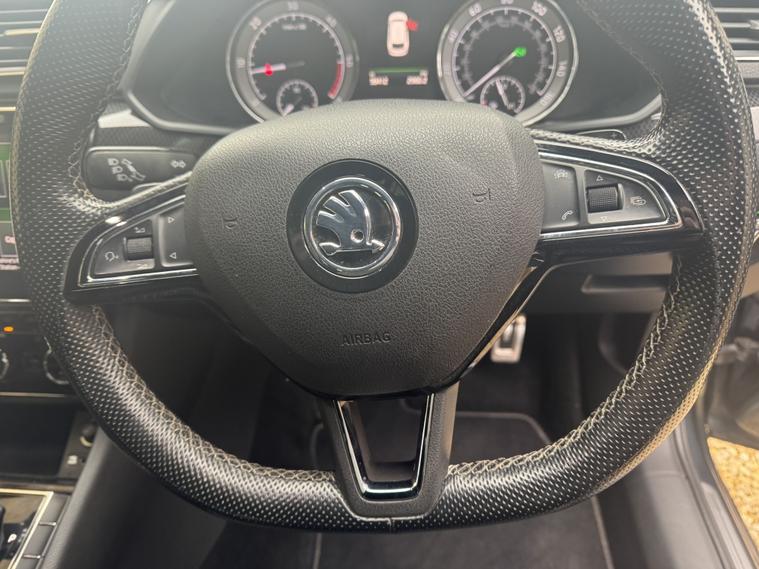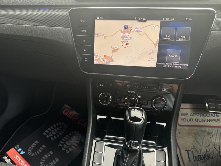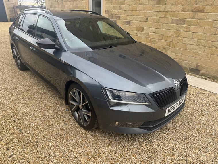 SKODA SUPERB DIESEL ESTATE 2.0 TDI CR SPORT LINE DSG AUTO 7 SPEED 150-BHP 2017-67 REG IN GREY METALLIC TOP SPEC WITH SPORT SEATS LEATHER SUEDE TOUCHSCREEN SAT NAV MEDIA 9.2 SCREEN - WITH UPGRADE CANNON SOUND SYSTEM ONLY 55000 MILES FSH NEW TIMING BELT KIT DONE WITH WATER PUMP AND SERVICED UP TO DATE DRIVES EXCELLENT HEATED SEATS RAIN SENSOR WIPERS AUTO LED DAYTIME RUNNING LIGHTS FRONT FOG LIGHTS LEATHER SPORT STEERING WHEEL WITH ADAPTIVE CRUISE AND SIGN RECOGNITION - BLUETOOTH USB AUX CONNECTION - UPGRADE ALLOY WHEELS - ELECTRIC HEATED AUTO FOLDING MIRRORS - HIGH BEAM ASSIST - DRIVE MODE SELECTOR - APPLE PLAY SYSTEM CONNECT - DYNAMIC STEERING RESPONCE SYSTEM - FATIQUE DETECTION DETECTION SYSTEM - split folding rear seats with isofix retractable sliding shelf - illuminated vanity mirrors - front rear arm rests with cup holders and storage area - lots more extras just been fully valeted new mot with sale 5 star aa warranty 3 months drive away insurance available cat n insurance DAB radio body colour bumpers mirrors door handles led brake lights twin exhaust pipes rear spoiler push button start system excellent condition drives perfect everything works as it should - AA APPROVED DEALER 5 star warranty indoor viewing by appointment only - 01772581403 or for a walk round video watsapp 01772581403 - local train station pickup by appointment only preston station - uk delivery - low rate finance available on request www.gmp dealer's website . 19'' Alloys Tyre repair kit.