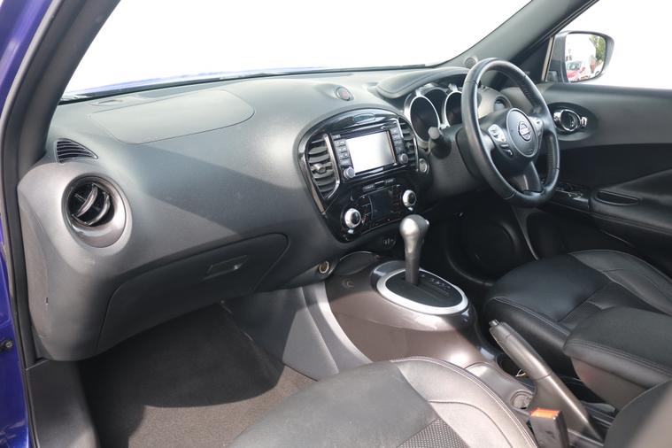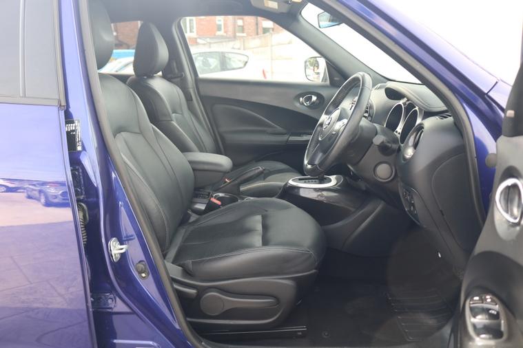 ONE REGISTERED KEEPER / EXCEPTIONALLY LOW MILEAGE / SERVICE HISTORY AND AUTOMATIC (CVT) WOW , This Stunning Nissan Juke 1.6 Petrol Automatic (CVT) Comes In Gorgeous Magnetic Blue Metallic Complete With 17 Inch Nissan Alloy Wheels , Inside You Are Greeted By Comfortable Part Leather Trim With Heated Front Seats , Sat Nav , Dab Radio , Bluetooth , Climate & Cruise Control , Front & Rear Parking Sensors Makes This The PERFECT AUTOMATIC HAYCHBACK ///. Bluetooth connection, Cruise control, Front parking sensor, Front view camera, Heated front seat, Navigation system, PAS, Park assist camera, Rear parking sensor, Rear wiper, Reverse parking aid, Service indicator, Steering wheel mounted controls, Surround view, Trip computer, Windscreen heating, Audio remote control, Auxiliary input socket, Climate control, Digital radio, Folding rear seats, Front armrest, Front electric windows, Front head restraints, Height adjustable drivers seat, OEM sound system, Radio/CD, Rear electric windows, Rear headrests, Sports seats, Steering wheel rake adjustment, USB/iPod interface, Body coloured bumpers, Door mirrors electrically foldable, Electric door mirrors, Heated door mirrors, LED Foglights, LED Indicator lights, LED daytime running lights, 3x3 point rear seat belts, ABS, Blind spot information, Curtain airbags, Drivers airbag, ESP, Isofix child seat anchor points, Lane departure warning, Passenger airbag, Rear airbags, Side airbags, Traction control, Tyre pressure monitor, Alarm, Immobiliser, Remote central locking, Leather seat trim, Alloy wheels, Tyre repair kit. All Our vehicles Come With a Minimum 3 Month RAC Platinum Warranty and FREE RAC 12 Months Breakdown Cover Included in the price, With Very Competitively Priced RAC Upgrade Options Available For 1, 2, or 3 Years, Plus A 60 Point Quality/Safety Check Prior To Delivery. We stock around 80 Guaranteed Quality Used Cars and Vans on site, all our Vehicles are Fully HPI checked and clear And are Available for you to Test Drive and Inspect. We have Low-Cost Finance Packages available and Part Exchanges are Welcome. Nationwide Delivery Available, Plus We Also Offer Fully Comprehensive 5 Day Drive-Away Insurance, Ask For Details. Call Jeff NOW on 01772581816 or 01772581816, For More Information and To Reserve Any Vehicle To Avoid Any Disappointment, For a £99 No Obligation Fully Refundable Deposit. We Are Open 7 Days a Week and Only 5 Minutes from The M6 Junction 28 or 10 Minutes from The M65 Junction 1 or The M61 Junction 8. Check out Our Website For More Vehicles, Offers And Details - dealer's website You Can Find Us At, PR25 2YE, FAMILY RUN VALUES, ESTABLISHED OVER 50 YEARS, WE GUARANTEE YOU WON€™T BE DISAPPOINTED.
