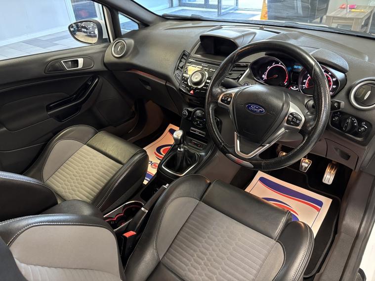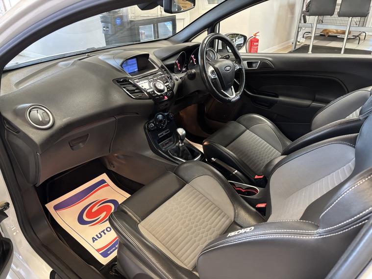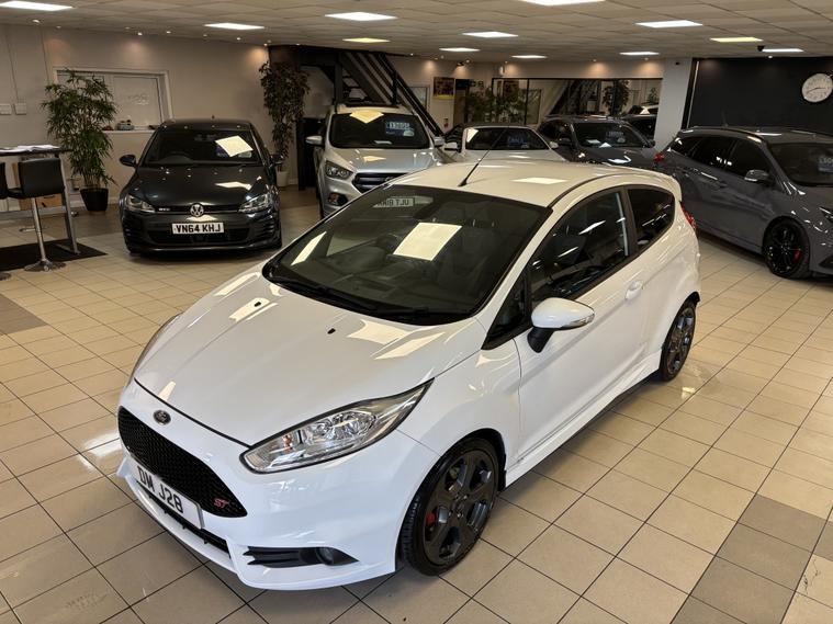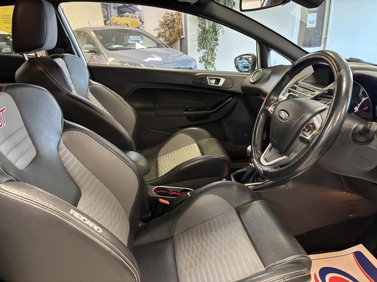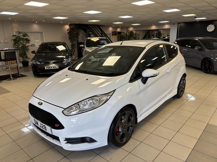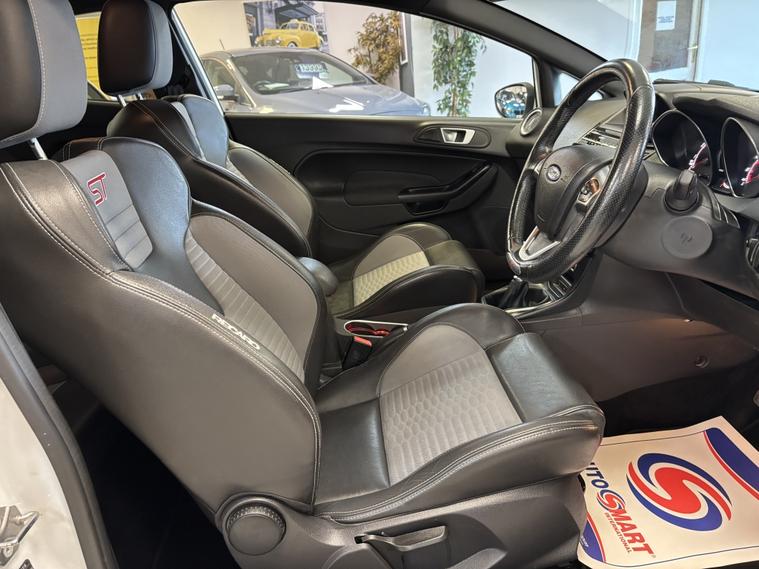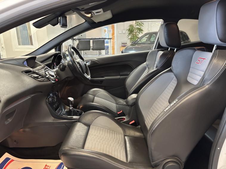 2017 Ford Fiesta 1.6T EcoBoost ST-3 €“ Polar White A stunning example of the legendary Fiesta ST-3, finished in Polar White with sporty styling and premium features throughout. Key Features: Privacy glass & keyless go Graphite alloys with red brake calipers LED daytime running lights Climate control & traction control Heated Recaro sports seats Sat Nav, DAB & Bluetooth Multi-function steering wheel Plus much more! Peace of Mind: Low rate finance options available 3 months warranty included 12 months AA cover included Instant price given on all part exchanges We are a trusted, family-run business located just off Junction 28 of the M1 (Alfreton) €“ only a 2-minute walk from the local train station. ???? Out of hours? Call Gavin directly on 01773802192.. 12v Socket, Bluetooth Preparation (Phone), Climate Control, Cruise Control, Cupholders, Front Electric Windows, Fuel Computer, Heated Front Seats, Height Adjustable Drivers Seat, Pollen Filter, Privacy Glass, Rear View Auto Dimming Mirror, Split Rear Seats, Steering Column - Adjustable, USB and AUX, CD Radio, DAB Radio, Leather Steering Wheel, Satellite Navigation, Power Assisted Steering (PAS), Anti Lock Brakes, Auto On Headlights, Curtain Airbags, Driver Airbag, Electronic Brake Assistance (EBA), Electronic Brakeforce Distribution (EBD), Electronic Stability Programme (ESP), Front Fog Lights, Heated Front Windscreen, ISOFIX, Passenger Airbag, Rain Sensitive Wipers, Traction Control, Alarm, Keyless Central Locking, Bodykit, Part Leather/Cloth, Solid Paint, Alloy Wheels.
