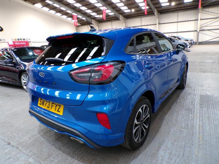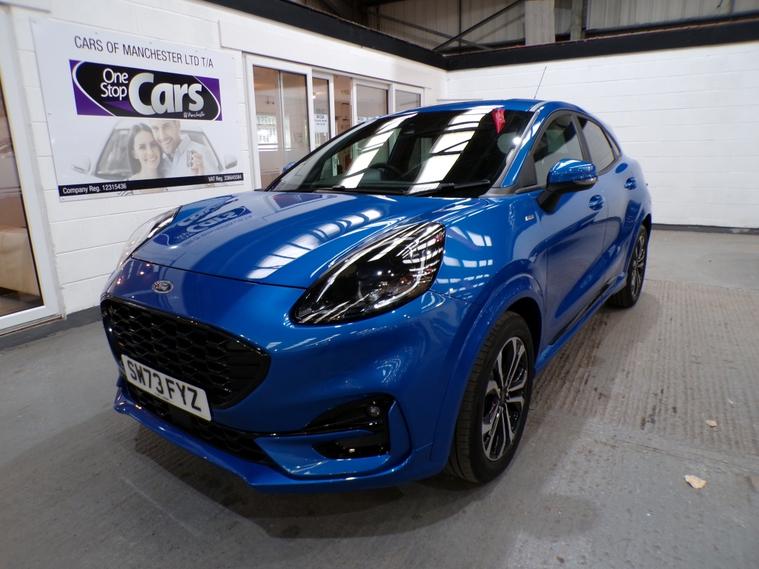This 2023 Ford Puma ST Line offers exceptional provenance, having been meticulously maintained with a full service history and a single owner from new. This stylish compact SUV is powered by an efficient 1.0L Petrol Hybrid engine, meeting Euro 6 emissions standards. Inside, you'll find the user friendly Ford SYNC 3 Navigation system, complete with Android Auto and Apple CarPlay for seamless smartphone integration, and Bluetooth connectivity. For added convenience, it also features rear parking sensors to assist with manoeuvring. The Ford Puma ST Line is designed to impress with its impressive fuel economy, achieving a highlight of 52 miles per gallon, and its low CO2 emissions, making it a more economical and environmentally conscious choice compared to similar vehicles. The manual air conditioning ensures a comfortable cabin environment regardless of the weather. Coming with the balance of it's manufacturers warranty. For full details of this vehicle and to request a walk around video please give one of our dedicated sales team a call on 01616232251 PLEASE NOTE THAT CURRENTLY NOT ALL CARS ON SITE HAVE BEEN FULLY PREPARED TO SHOWROOM STANDARD. Therefore, appointments are preferred to give us a chance to check the car over prior to your visit. This is not compulsory and should you wish to visit the site without an appointment please just bear in mind the vehicles may still require all or some of their prep work. Thank you in anticipationof your patience. ALL CARS COME WITH AT LEAST A TEN MONTH INDEPENDANT MOT WITH ALL ADVISORIES COMPLETED PRIOR TO COLLECTION. ALL CARS HAVE AN OIL AND FILTER SERVICE (IF ONE IS DUE) PRIOR TO COLLECTION ALL OUR CARS ARE HPI CLEAR PART EXCHANGE WELCOME, VERY COMPETIVE VALUES OFFERED FINANCE OPTIONS ARE AVAILABLE , GREAT RATES OFFERED AND WE ARE FULLY FCA REGULATED, WHY NOT LET US GIVE YOU A QUOTE? CARS CAN BE RESERVED FOR UP TO 5 DAYS FOR £100. THE RESERVATION FEE IS FULLY REFUNDABLE , NO QUESTIONS ASKED OUR CARS ARE PRICE CHECKED DAILY. Automated High-beam assist, Cruise control, Digital Instrument Cluster, Multifunction steering wheel, Navigation system, Voice control for navigation system, Windscreen heating, Audio remote control, Digital radio, Front centre armrest, Front head restraints, OEM sound system, Rear headrests, USB input, Rear side wing doors, Roof spoiler, Tailgate, Alarm, Cloth seat upholstery, Solid Paint, 17'' Alloy wheels, Tyre repair kit.