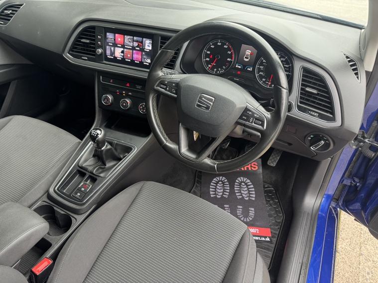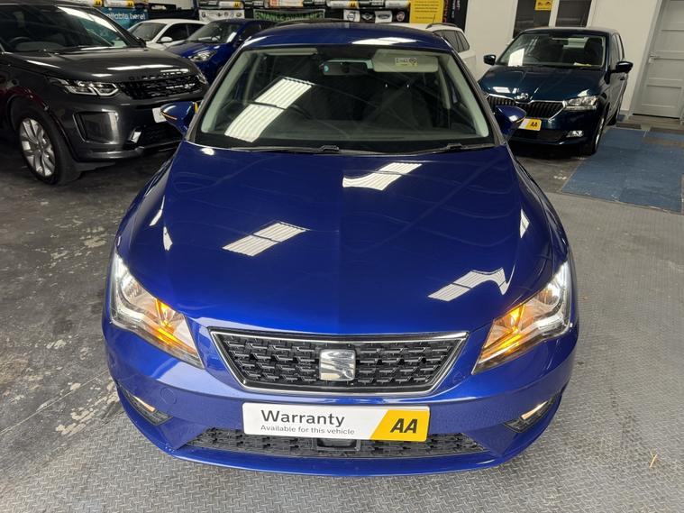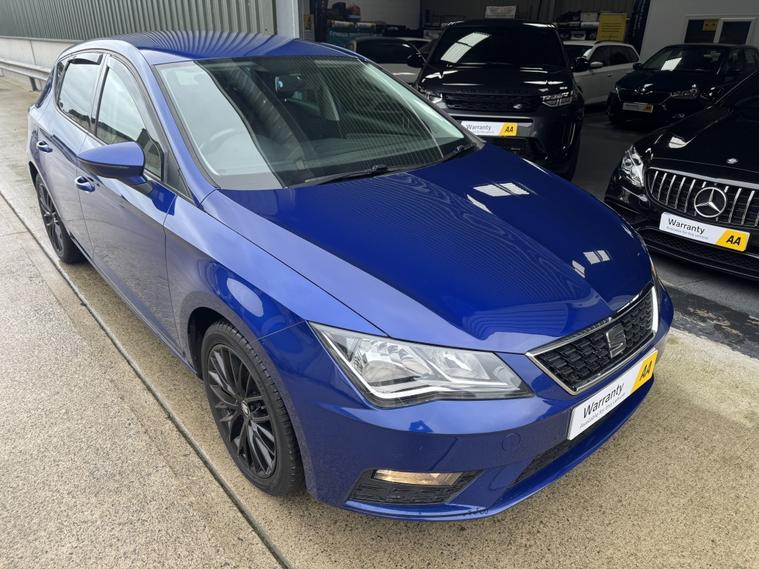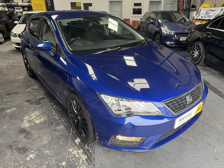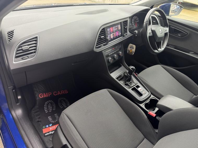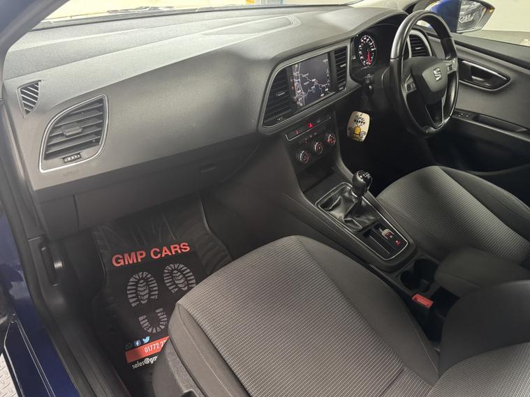 Seat Leon 1.2 Tsi se dynamic technology 110-bhp petrol 6 speed manual 2018 in lovely metallic blue low mileage only 67000 miles with full service history 2 keys excellent condition great specification air conditioning 18€ alloy wheels with recently new tyres Satalalite navigation touchscreen media 8€ colour screen leather multi functional steering wheel with cruise control and speed limiter system- electric windows electric heated mirrors remote central locking parking sensors usb and aux connect front arm rest with storage area glovebox storage front cup holders door pocket storage area blue voice control system climate control air conditioning comfort suspension dab radio gloss black front grill body colour bumpers door handles and mirrors privacy tinted rear glass led auto headlights led daytime running lights led indicators split folding rear seats with isofix rear loading shelf illuminated vanity mirrors height adjustable front seats interior reading lights leather handbrake holder and gearstick gloss black b pillars hill hold assist alarm immobiliser system aa approved dealer 5 star warranty fully comp Driveaway insurance available on request indoor viewing by appointment only excellent condition uk delivery service available on request preston train station pickup service available on request all card payments taken low rate finance deals look at our website for more details and more cars available dealer's website 01772581403 or for a Walkround video watsapp 01772581403 Gmp cars Alston Longridge Preston pr3 . 12 months MOT, 3 months warranty, 3x3 point rear seat belts, ABS, Adjustable seats, Air Conditioning, Alarm, Alloy Wheels, Anti theft system, Audio remote control, Automatic Lights, Automatic Windscreen Wipers, Bluetooth enabled, Body coloured bumpers, Central locking, Climate Control, Cloth upholstery, Colour Coded Interior, Cruise Control, Driver airbag, Electric door mirrors, Electric Windows, Electronic Stability Control (ESP), Folding rear seats, Front armrest, Front electric windows, Front fog lights, Front head restraints, Full Service History, Head restraints, Heated door mirrors, Height adjustable drivers seat, Immobiliser, Independent Inspection, Isofix child seat anchor points, Locking wheel nuts, Lumbar support, Metallic Paint, Metallic paintwork, Multi function steering wheel, Navigation system, Park distance control, PAS, Passenger airbag, Radio/CD, Rear electric windows, Rear headrests, Rear wiper, Remote central locking, Reverse parking aid, Service History, Service indicator, Steering wheel rake adjustment, Steering wheel reach adjustment, Sunscreen glass, Traction control, Trip computer, V5 Document.