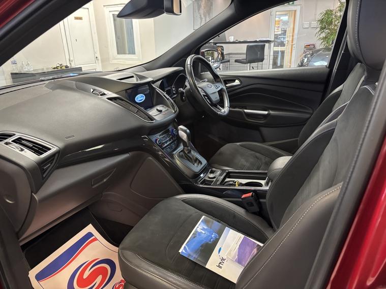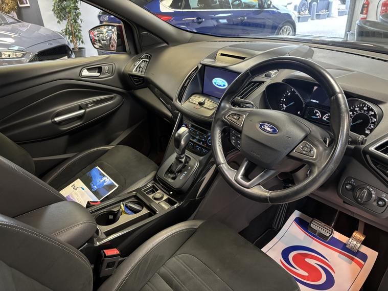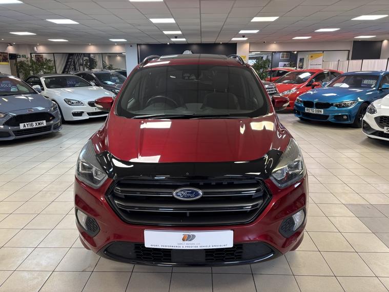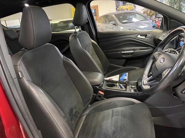 Standout ST-Line X finished in striking Candy Pearl Red with a fantastic spec: 2.0 TDCi Powershift Automatic with paddle shift All-Wheel Drive (AWD) for confident handling Panoramic Roof 19€ Gloss Black Alloys with privacy glass & roof rails LED running lights & hands-free power boot Ford SYNC 3 with Sat Nav & DAB Heated Half Leather Sports Seats Park Assist, Lane Assist, Blind Spot Monitoring & Self Park Detachable towbar Cruise control & multifunction steering wheel Service History: 8 services in total €“ 6 with main Ford dealer, 2 independent. Extras included: Low Rate Finance Options Available 12 Months AA Cover 3 Months Warranty Instant price given on all part exchanges We are a friendly family-run business, conveniently located just off J28 of the M1 in Alfreton €“ only a 2-minute walk from the train station. ???? For out-of-hours enquiries call Gavin on 01773802192.. Bluetooth connection, Cruise control, Front parking sensor, Gesture tailgate/bootlid opening and closing, Heated front seat, Navigation system, PAS, Rear parking sensor, Rear wiper, Reverse parking aid, Self parking system, Steering wheel mounted controls, Trip computer, Windscreen heating, 2 zone climate control, Audio remote control, Auxiliary input socket, Digital radio, Electrically adjustable drivers seat, Folding rear seats, Front electric windows, Front head restraints, Height adjustable drivers seat, Lumbar support, OEM sound system, Rear armrest, Rear electric windows, Rear headrests, Sports seats, Steering wheel rake adjustment, Steering wheel reach adjustment, USB/iPod interface, Body coloured bumpers, Door mirrors electrically foldable, Electric door mirrors, Electric sunroof, Heated door mirrors, LED daytime running lights, Opening panoramic glass roof, Roof rails, Space saver spare wheel, Sport suspension, 3x3 point rear seat belts, ABS, Curtain airbags, Drivers airbag, ESP, Isofix child seat anchor points, Passenger airbag, Rear airbags, Side airbags, Traction control, Tyre pressure monitor, Alarm, Immobiliser, Remote central locking, Partial leather seat trim, Solid Paint, Alloy wheels.