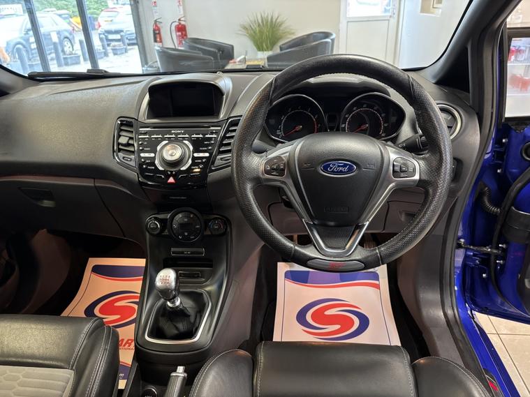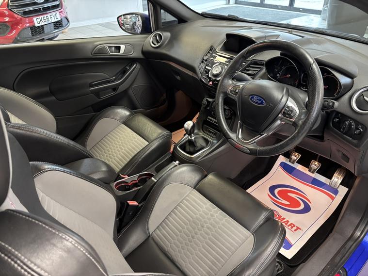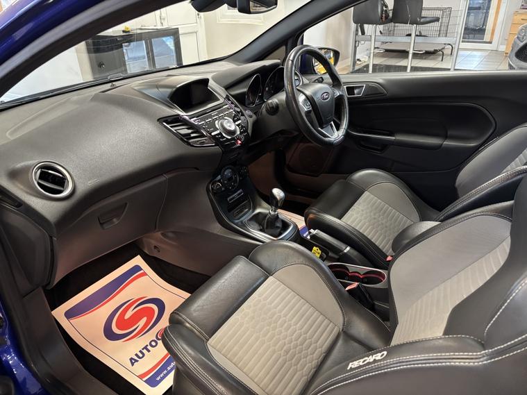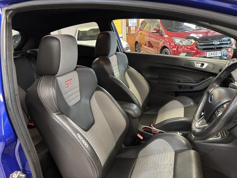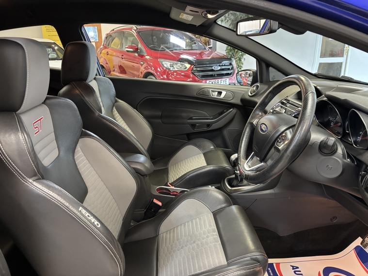 Ford Fiesta 1.6T EcoBoost ST-3 €“ Spirit Blue €“ Great Spec €“ Finance Available This stunning Ford Fiesta ST-3 in Spirit Blue is in excellent condition with 8 service stamps (majority Ford) and comes with 12 months MOT for peace of mind. Key Features: Sat Nav, DAB Radio & Bluetooth Rear Parking Sensors & Cruise Control Heated Recaro Sports Seats Graphite Alloy Wheels Keyless Go & Electric Mirrors Auto Lights & Auto Wipers Multi-Function Steering Wheel Climate Control & Privacy Glass And much more! Low rate finance options available 12 months AA cover included 3 months warranty for added reassurance Instant price given on all part exchanges We are a friendly, family-run business located just off Junction 28 of the M1 (Alfreton) and only a 2-minute walk from the local train station. Out of hours? Call Gavin on 01773802192. 12v Socket, Bluetooth Preparation (Phone), Climate Control, Cruise Control, Front Electric Windows, Fuel Computer, Heated Front Seats, Height Adjustable Drivers Seat, Pollen Filter, Privacy Glass, Rear View Auto Dimming Mirror, Split Rear Seats, Steering Column - Adjustable, USB and AUX, CD Radio, DAB Radio, Leather Steering Wheel, Satellite Navigation, Power Assisted Steering (PAS), Anti Lock Brakes, Auto On Headlights, Curtain Airbags, Driver Airbag, Electronic Brake Assistance (EBA), Electronic Brakeforce Distribution (EBD), Electronic Stability Programme (ESP), Front Fog Lights, Heated Front Windscreen, ISOFIX, Passenger Airbag, Rain Sensitive Wipers, Traction Control, Alarm, Keyless Central Locking, Bodykit, Part Leather/Cloth, Solid Paint, Alloy Wheels.