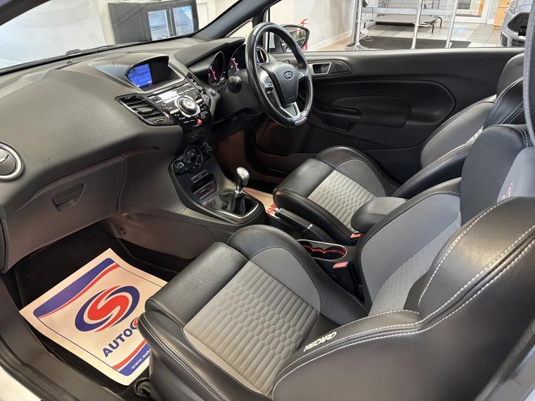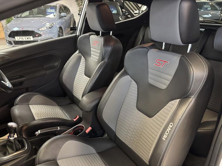 Standout Ford Fiesta ST-3 finished in Polar White with Graphite Alloys & Red Calipers €“ a great-looking hot hatch that€™s been well cared for and drives superbly. Key Features: 1.6T EcoBoost engine €“ fantastic performance and economy Heated Recaro Sports Seats 12 Months MOT 7 Service Stamps, last service completed by us Privacy Glass Keyless Go Satellite Navigation, DAB Radio & Bluetooth Multifunction Steering Wheel Cruise Control, Auto Lights & Wipers Daytime Running Lights 2 Keys Graphite Alloys with Red Calipers Plus much more! LOW RATE FINANCE OPTIONS AVAILABLE 12 Months AA Breakdown Cover 3 Months Warranty Included Instant Price Given on All Part Exchanges We€™re a family-run business located just off Junction 28 of the M1 (Alfreton) €“ only a 2-minute walk from the local train station. Out of hours? Call Gavin on 01773802192.