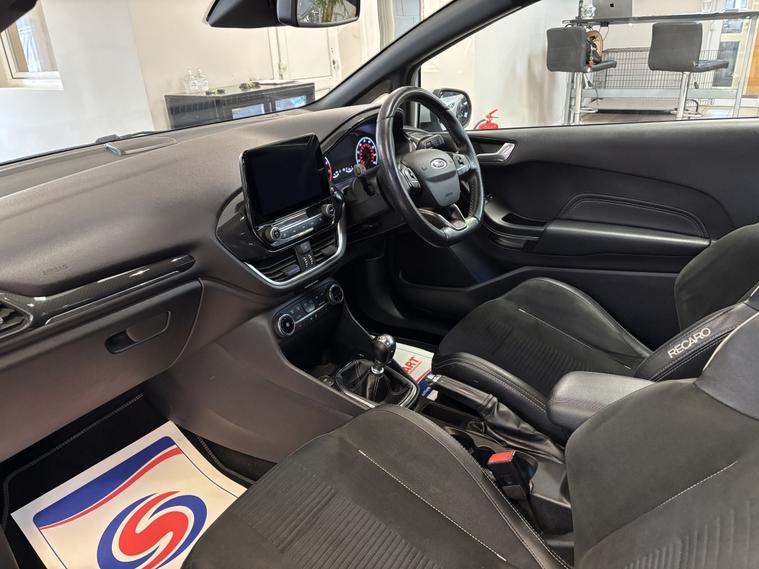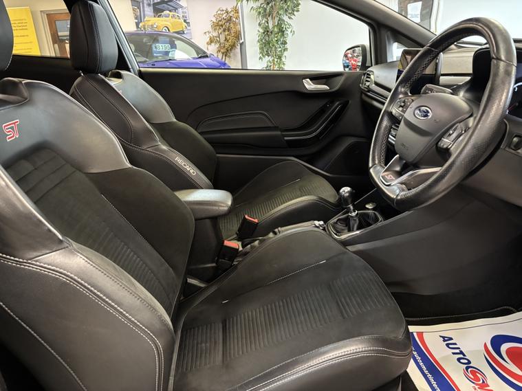Ford Fiesta 1.5T EcoBoost ST-3 €“ Silver Fox €“ Stunning Example! 7 Service Stamps €“ Last Serviced 30/05/2025 €“ 12 Months MOT A superb example of the sought-after ST-3 in Silver Fox, freshly serviced and ready to drive away today! This car has been well maintained with 7 service stamps, the most recent completed 30th May 2025, and comes with 12 months MOT for peace of mind. Specification Includes: 18€ Diamond Cut Alloy Wheels with Red Calipers LED Daytime Running Lights Keyless Entry & Start Power Folding Mirrors Privacy Glass Reversing Camera & Parking Sensors Heated Recaro Sports Seats Heated Steering Wheel Wireless Charging Pad Satellite Navigation, DAB & Bluetooth Smartphone Mirroring Automatic Lights & Wipers 2 Remote Keys Originally Supplied by Evans Halshaw, Burnley Why Buy From Us? Low Rate Finance Options Available 12 Months AA Breakdown Cover Included 3 Months Warranty Instant Price Given on All Part Exchanges We€™re a family-run business conveniently located just off Junction 28 of the M1 (Alfreton) €“ only a 2-minute walk from the local train station. Out of hours? Call Gavin on 01773802192. Adaptive cruise control, Adaptive steering, Automated High-beam assist, Cruise control, Digital Instrument Cluster, Keyless go, Multifunction steering wheel, Navigation system, Steering wheel audio controls, Travel data recorder, Trip computer, Windscreen heating, Ambient lighting, Audio remote control, Auxiliary input socket, Centre console media control touchpad, Digital radio, Front centre armrest, Front head restraints, Front interior 12V power outlet, OEM sound system, Rear headrests, Steering wheel rake adjustment, Steering wheel reach adjustment, USB input, Body coloured bumpers, Alarm, Immobiliser, Remote central locking, Leather seat upholstery, Partial leather seat upholstery, Solid Paint, 18'' Alloy wheels, Alloy wheels, Tyre repair kit.