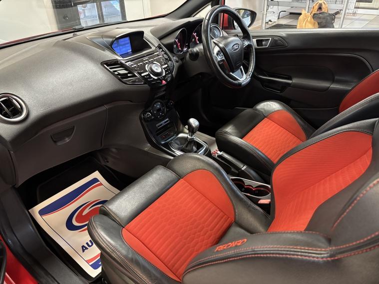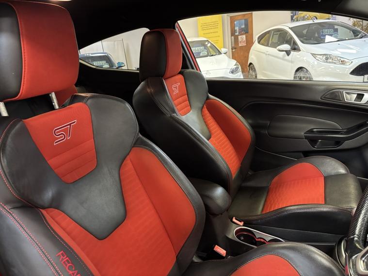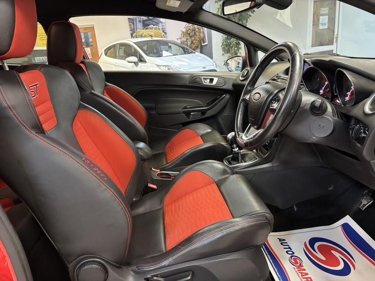 Ford Fiesta 1.6T EcoBoost ST-3 €“ Milton Orange €“ Stunning Example! Full Service History | Cambelt & Water Pump Replaced | Finance & Warranty Available This head-turning Ford Fiesta ST-3 in Milton Orange is in superb condition and comes with an excellent specification and full service history. Recently had the cambelt and water pump replaced, giving you total peace of mind. Specification & Features: 1.6T EcoBoost €“ iconic ST performance Full service history €“ well maintained Graphite alloys with red calipers Privacy glass Keyless entry & start Satellite navigation, DAB, Bluetooth Cruise control & multifunction steering wheel Climate control & heated Recaro seats Auto lights & auto wipers LED daytime running lights 2 keys included Finance & Part Exchange Competitive finance options available Instant price given on all part exchanges 3 months warranty included 12 months AA cover for extra reassurance We€™re a family-run business located just off Junction 28 of the M1 (Alfreton) €” only a 2-minute walk from the local train station for easy access. Out of hours? Call Gavin on 01773802192. 3x3 point rear seat belts, ABS, Curtain airbags, Drivers airbag, ESP, Passenger airbag, Side airbags, Traction control, Tyre pressure monitor, Alarm, Immobiliser, Remote central locking.