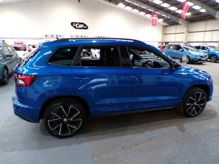 This 2019 Skoda Karoq TSI SportLine offers peace of mind with a full 12 months MOT provided on purchase, complemented by two keys and a four stamp service history. This Euro 6 compliant 1.5 litre petrol model is presented in the SportLine trim, featuring the convenient KESSY Keyless Entry and Start System with SAFE System, a helpful rear view camera for parking assistance, and a light and rain sensor that automatically activates the headlights and dims the rear view mirror. Enjoy your journeys with DAB digital radio and Bluetooth connectivity. The Skoda Karoq TSI SportLine stands out with its impressive acceleration, reaching 0-60mph in just 8.6 seconds. Its large boot space offers excellent practicality for all your needs. It will come with a three month Warranty which includes full roadside assist breakdown cover, provided by a trading standard approved company. For full details of this vehicle and to request a walk around video please give one of our dedicated sales team a call on 01616232251 PLEASE NOTE THAT CURRENTLY NOT ALL CARS ON SITE HAVE BEEN FULLY PREPARED TO SHOWROOM STANDARD. Therefore, appointments are preferred to give us a chance to check the car over prior to your visit. This is not compulsory and should you wish to visit the site without an appointment please just bear in mind the vehicles may still require all or some of their prep work. Thank you in anticipationof your patience. ALL CARS COME WITH AT LEAST A TEN MONTH INDEPENDANT MOT WITH ALL ADVISORIES COMPLETED PRIOR TO COLLECTION. ALL CARS HAVE AN OIL AND FILTER SERVICE (IF ONE IS DUE) PRIOR TO COLLECTION ALL OUR CARS ARE HPI CLEAR PART EXCHANGE WELCOME, VERY COMPETIVE VALUES OFFERED FINANCE OPTIONS ARE AVAILABLE , GREAT RATES OFFERED AND WE ARE FULLY FCA REGULATED, WHY NOT LET US GIVE YOU A QUOTE? CARS CAN BE RESERVED FOR UP TO 5 DAYS FOR £100. THE RESERVATION FEE IS FULLY REFUNDABLE , NO QUESTIONS ASKED OUR CARS ARE PRICE CHECKED DAILY TO ENSURE GREAT PRICES. ALL MAJOR CREDIT / DEBIT CARDS ACCEPTED. WE ARE OPEN 6 DAYS A WEEK (CLOSED ON SUNDAYS) CUSTOMER SERVICE IS CENTRAL TO OUR ETHOS.