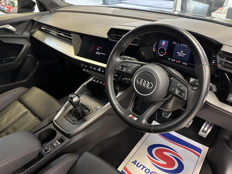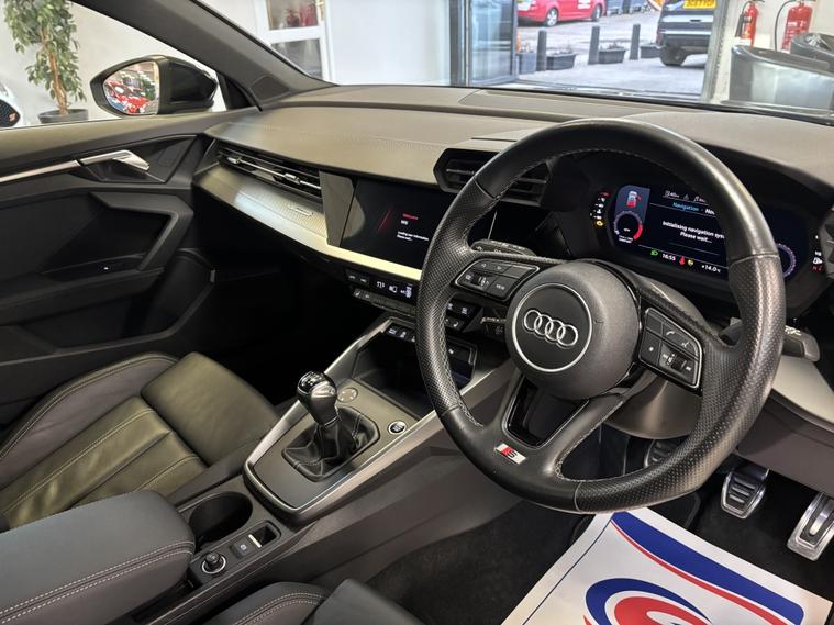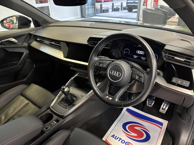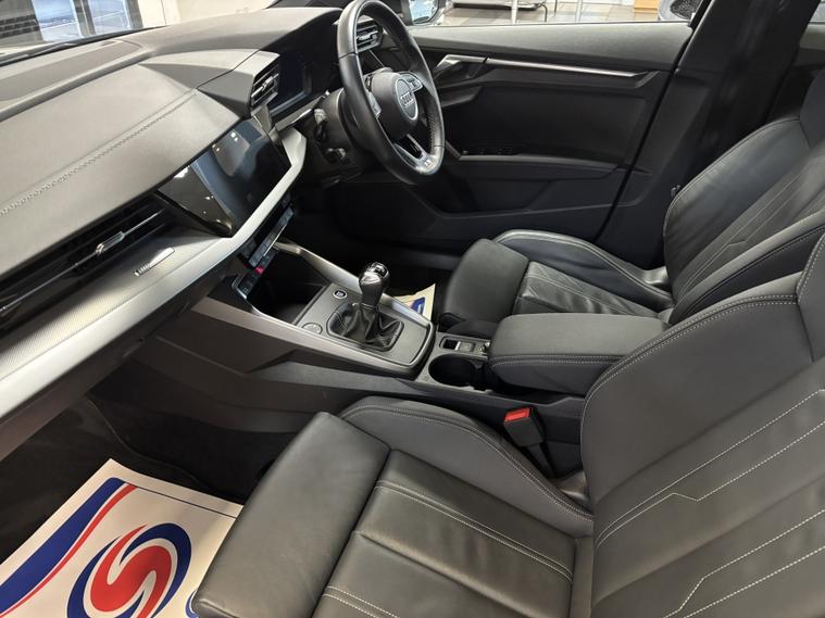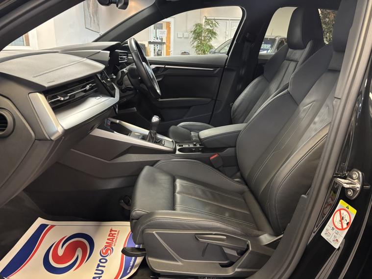 Audi A3 1.0 TFSI 30 S line Sportback €“ Bang & Olufsen | Leather | Digital Dash Full Audi Service History | 12 Months MOT | 3 Months Warranty | 12 Months AA Cover A stunning example of the Audi A3 S line Sportback finished to a high specification and backed by full Audi service history. Last serviced by ourselves and supplied with 12 months MOT for complete peace of mind. Spec includes: € Bang & Olufsen upgraded sound system € Heated leather S line seats € Digital dash with smartphone mirroring € LED daytime running lights € Reverse camera € Privacy glass € Keyless go € Power folding mirrors € Cruise control € Multi-function steering wheel € Voice activation € Climate control € Audi Drive Select Drives beautifully €” smooth, efficient 1.0 TFSI engine with great economy and the premium feel you expect from Audi. LOW RATE FINANCE OPTIONS AVAILABLE INSTANT PRICE GIVEN ON ALL PART EXCHANGES We are a family-run business, conveniently located just off Junction 28 of the M1 (Alfreton) and only a 2-minute walk from the local train station. Out of hours call Gavin on 01773802192. Cruise control, Digital Instrument Cluster, Multifunction steering wheel, Navigation system, Service interval indicator, Tool kit, Travel data recorder, Trip computer, Voice control for navigation system, 3rd party sound system, Audio remote control, Centre console media control touchpad, Digital radio, Front centre armrest, Front head restraints, Rear armrest, Rear headrests, Steering wheel rake adjustment, Steering wheel reach adjustment, USB input, Rear side wing doors, Alarm, Immobiliser, Remote central locking, Leather seat upholstery, Partial leather seat upholstery, Solid Paint, 18'' Alloy wheels, Alloy wheels, Tyre repair kit.
