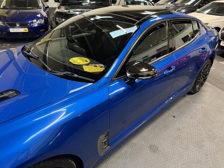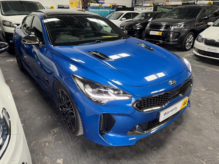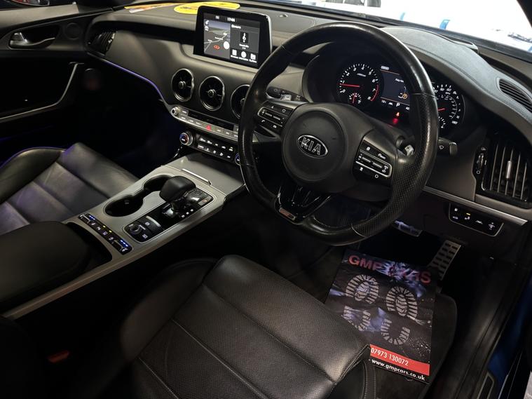 Kia stinger gran Turismo special edition auto 2.0 T GDi Blue Edition 5 door sportback 42000 miles full Kia service history 2 previous owners glass electric panoramic sunroof full leather heated cooling electric seats Harmon kardon sound system revers cameras parking aid assist brand new alloys and tyres auto headlights rain sensor wipers 8€ touchscreen media upgrade sound system Bluetooth connectivity Apple car play drive mode selector split folding rear seats with isofix illuminated vanity mirrors cup holders arm rest front and rear heads up display Kia connect services dab radio auto dimming mirrors stunning car throughput chrome door mirrors heated electric folding- dynamic cornering lights front fog lights led daytime running lights led rear lights electric boot opener privacy glass shark fin antenna on roof welcome home function headlights interior ambient lighting led interior cabin lighting heated leather multi functional steering wheel with adaptive cruise control this car had a very light cracked rear bumper insurance cat s leather dashboard tyre pressure monitors locking wheel nuts Kia service pack keys private reg to be retained or negotiated in price we are aa approved 5 star warranty drive away insurance available on request new mot with the sale and just been in Kia for a full service and recall done with all clear - preston train station pickup service available on request uk delivery service can be arranged this car is stunning and needs nothing it€™s immaculate look at our website for more details and pictures dealer's website 01772581403 or for a Walkround video watsapp 01772581403 Gmp cars . 12 months MOT, 3 months warranty, 3x3 point rear seat belts, ABS, Adjustable seats, Air Conditioning, Alarm, Alloy Wheels, Anti theft system, Anti-Glare Mirrors, Audio remote control, Automatic Lights, Automatic Windscreen Wipers, Bluetooth enabled, Body coloured bumpers, Central locking, Child locks, Child seats, Climate Control, Computer, Cruise Control, Driver airbag, DVD, Electric door mirrors, Electric sunroof, Electric Windows, Electrical adjustable seats, Electrically adjustable drivers seat, Electrically adjustable passenger seat, Electronic Stability Control (ESP), Folding rear seats, Front armrest, Front electric windows, Front fog lights, Front head restraints, Front Parking Sensors, Full Panoramic Roof, Full Service History, Head restraints, Headlight washers, Heated door mirrors, Heated front seat, Heated screen, Height adjustable drivers seat, Immobiliser, Independent Inspection, Isofix child seat anchor points, Leather seat trim, Leather upholstery, Locking wheel nuts, Lumbar support, Metallic Paint, Metallic paintwork, Multi function steering wheel, Navigation system, Park distance control, PAS, Passenger airbag, Premium Sound, Radio/CD, Radio/CD Multichanger, Rear armrest, Rear electric windows, Rear headrests, Rear wiper, Remote central locking, Reverse parking aid, Reversing Camera, Service History, Service indicator, Sideskirts, Spoiler, Sports seats, Steering wheel rake adjustment, Steering wheel reach adjustment, Sunroof, Sunscreen glass, Traction control, V5 Document, Xenon Headlights.