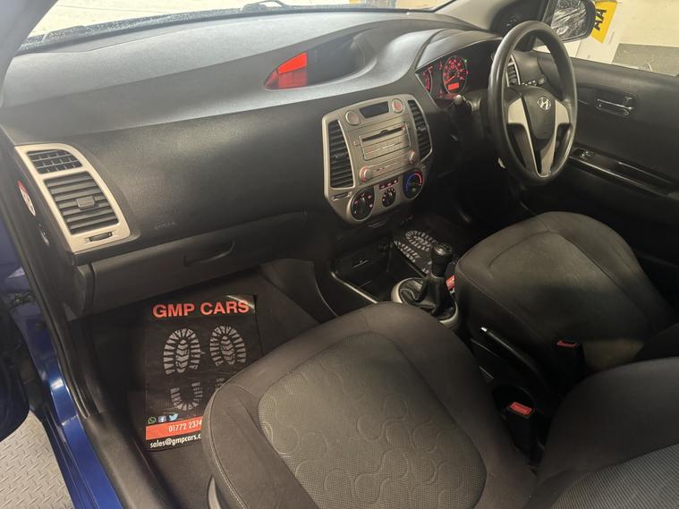 Hyundai i20 1.2 petrol 77-bhp petrol 5 speed manual 5 door hatch classic 1 owner from new in metallic blue with grey interior electric windows air conditioning remote central locking cup holders split folding rear seats adjustable front seats glovebox storage vanity mirrors cup holders door pocket storage areas Hyundai service pack manuals spare keys mot June 2026 excellent condition drives great no issues we are aa approved 5 star warranty drive away insurance all card payments taken indoor viewing by appointment only Preston train station pick up service available on request 01772581403 Gmp cars look at our website for more details dealer's website or for a walkround video 01772581403 Watsapp Gmp cars . 3x3 point rear seat belts, ABS, Curtain airbags, Drivers airbag, ESP, Isofix child seat anchor points, Passenger airbag, Side airbags, Traction control, Immobiliser, Remote central locking.