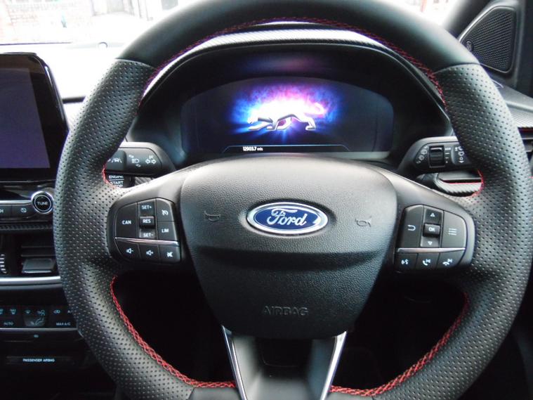 This is a fine example of one of the most sought after MHEV MILD HYBRID models in the range. Great specification including SATELLITE NAVIGATION, Half leather seats, parking sensors, colour coded body mouldings, remote locking, electric windows, climate and cruise control, DAB radio with voice activated bluetooth phone system, heated windscreen and alloy wheels. A one owner car with Full Ford Service history finished in the best colour metallic Agate Black, not to be missed at this great price!!!!!. Automated High-beam assist, Cruise control, Multifunction steering wheel, Navigation system, Windscreen heating, 3rd party sound system, Audio remote control, Digital radio, Front head restraints, Rear headrests, USB input, Rear side wing doors, Tailgate, Alarm, Cloth seat upholstery, Leather/Artificial leather seat upholstery, Black Paint, 18'' Alloy wheels, . dealer's website HIRE PURCHASE AVAILABLE, PART EXCHANGE WELCOME. Call 01512972504