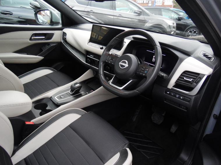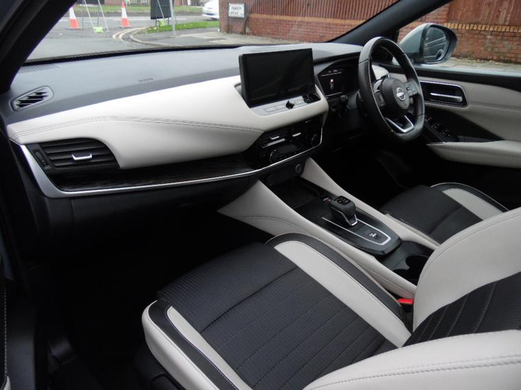 This stunning Qashqai is top of the range and has an enormous specification. Finished in metallic Nimbus Grey with factory finished colour coded styling and partial leather interior trim, it has a Full Nissan service history and 1 owner from new. The specification is tremendous with satellite navigation, front and rear parking sensors with rear camera, power folding mirrors, electric windows and mirrors with global opening and closing, climate control, cruise control, Bluetooth, 19 inch machine finished alloy wheels plus a whole host more. The combination of petrol and automatic delivers an extremely smooth drive, excellent performance, high fuel economy and class leading reliability. This is one not to miss, so be quick if you want to secure this stunning vehicle!!!. Adaptive cruise control, Adaptive steering, Automated High-beam assist, Digital Instrument Cluster, Electric boot/tailgate, Front view camera, Gesture tailgate/boot lid opening and closing, Head up display, Multifunction steering wheel, Navigation system, Remote vehicle locator, Steering wheel audio controls, Travel data recorder, Trip computer, Windscreen heating, Ambient lighting, Audio remote control, Coat hook, Digital radio, Front centre armrest, Front head restraints, OEM sound system, Radio/CD, Rear armrest, Rear headrests, Steering wheel rake adjustment, Steering wheel reach adjustment, USB input, Fixed panoramic glass roof, Rear side wing doors, Retractable hard top, Roof rails, Roof spoiler, Tailgate, Alarm, Immobiliser, Remote central locking, Partial leather seat upholstery, Metallic Paint, 19'' Alloy wheels, Alloy wheels, . dealer's website HIRE PURCHASE AVAILABLE, PART EXCHANGE WELCOME. Call 01512972504
