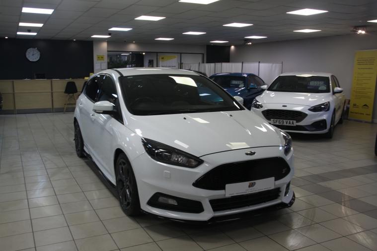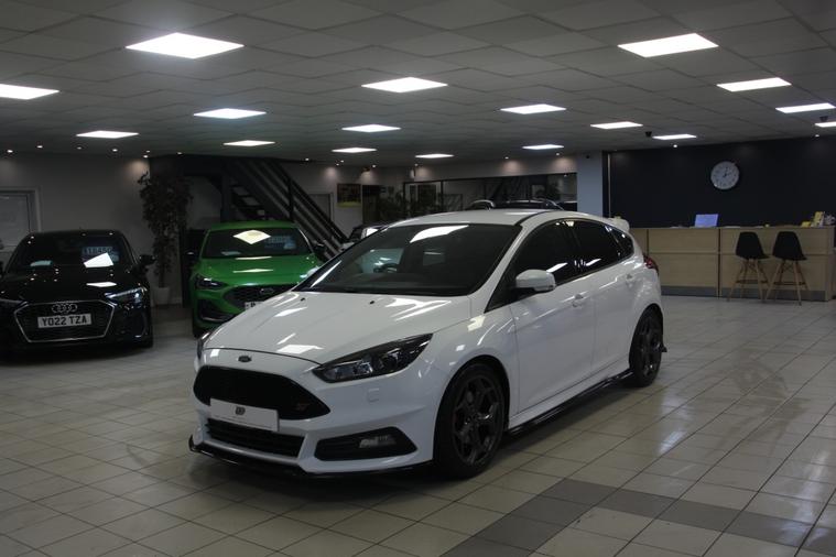 FORD FOCUS 2.0T ECO BOOST ST-3 €“ FROZEN WHITE €“ STUNNING EXAMPLE! Spec Highlights: Frozen White with TRC Styling Kit €“ real head-turner! 18€ Alloy Wheels with Red Brake Calipers Heated Full Black Recaro Leather Seats €“ premium comfort SYNC 2 System with Satellite Navigation, DAB Radio & Bluetooth Keyless Entry & Keyless Go LED Daytime Running Lights Power Folding Mirrors Cruise Control & Multifunction Steering Wheel Front & Rear Park Assist Sensors Privacy Glass Performance & Style Combined! The Focus ST-3€™s 2.0T EcoBoost engine delivers the perfect mix of performance and practicality, with the added flair of the TRC styling kit making this example stand out from the crowd. LOW-RATE FINANCE OPTIONS AVAILABLE 12 MONTHS AA COVER INCLUDED 3 MONTHS WARRANTY INCLUDED Instant price given on all part exchanges We€™re a friendly, family-run business located just off Junction 28 of the M1 (Alfreton) €“ only a 2-minute walk from the local train station for easy access. Out of hours WhattsApp 01773802192. 12v Socket, Bluetooth Preparation (Phone), Climate Control, Cruise Control, Electric Seat Adjustment, Front Armrest, Front Electric Windows, Fuel Computer, Heated Front Seats, Height Adjustable Drivers Seat, Privacy Glass, Rear View Auto Dimming Mirror, Split Rear Seats, USB and AUX, CD Radio, DAB Radio, Satellite Navigation, Power Assisted Steering (PAS), Adaptive Forward Headlights, Anti Lock Brakes, Auto On Headlights, Curtain Airbags, Driver Airbag, Electronic Brake Assistance (EBA), Electronic Brakeforce Distribution (EBD), Electronic Stability Programme (ESP), Headlight Cleaning System, Heated Front Windscreen, Passenger Airbag, Rain Sensitive Wipers, Rear Parking Sensor, Speed Limiter, Traction Control, Alarm, Keyless Central Locking, Bodykit, Leather Upholstery, Solid Paint, Alloy Wheels.