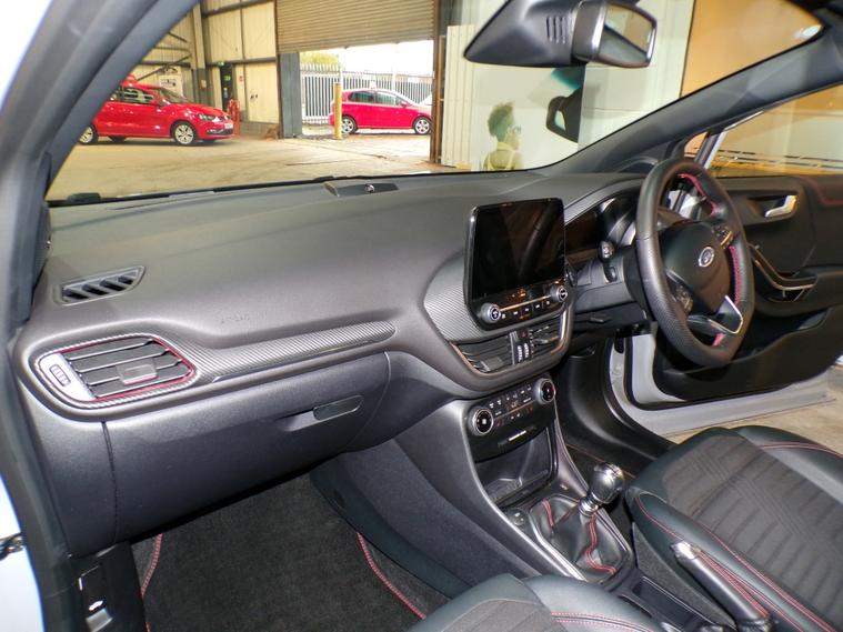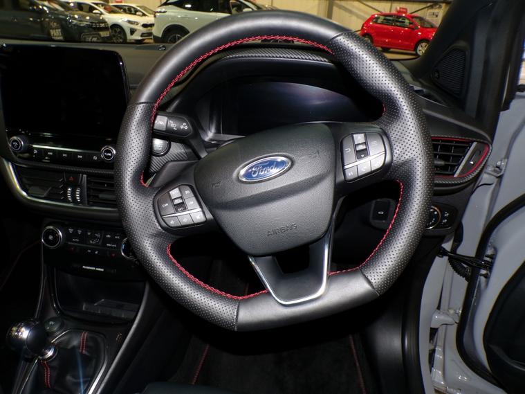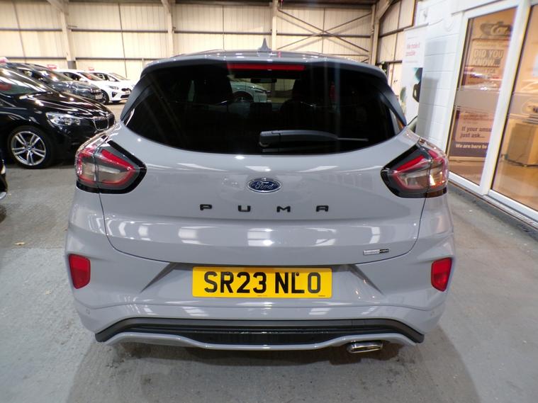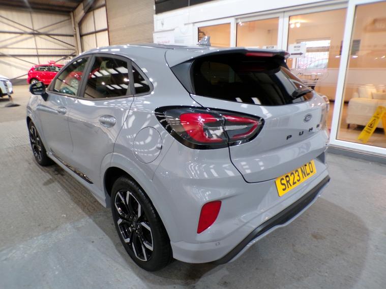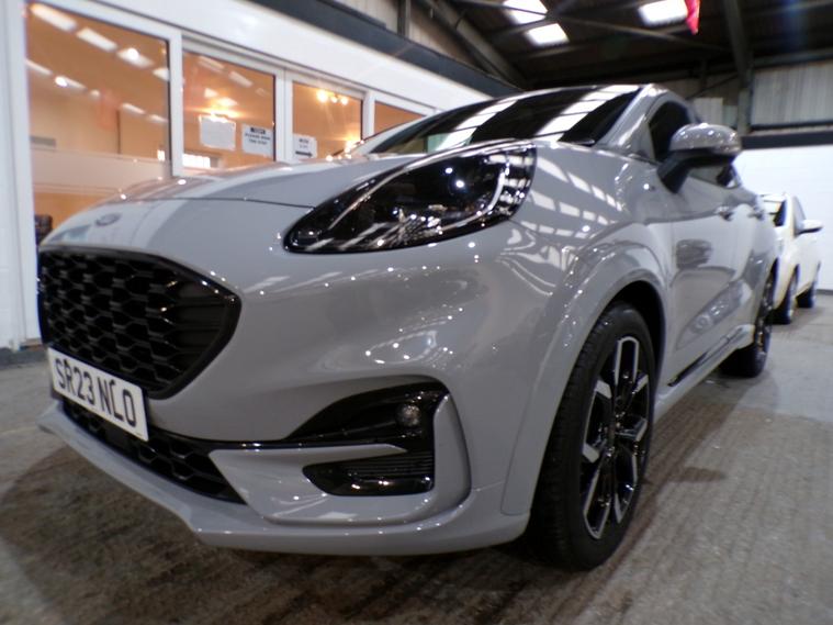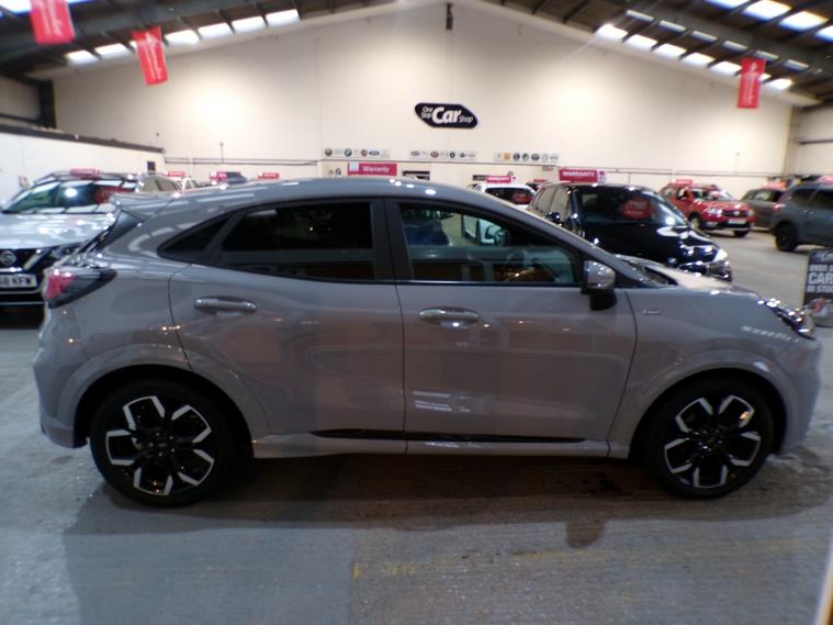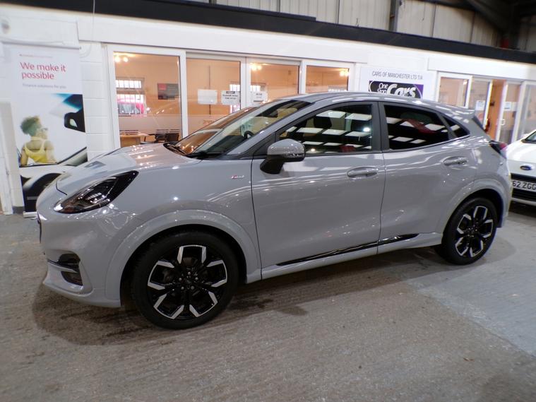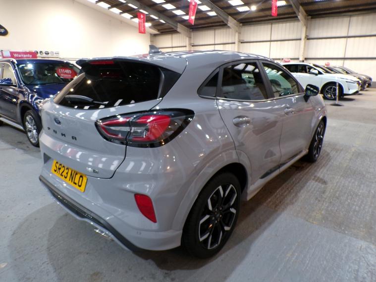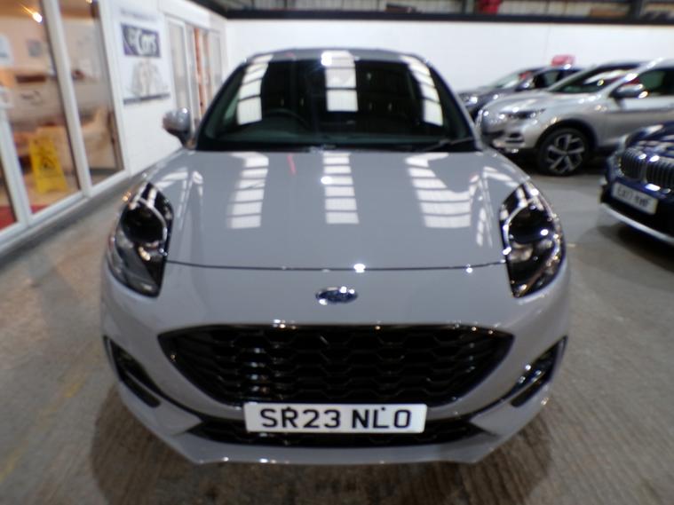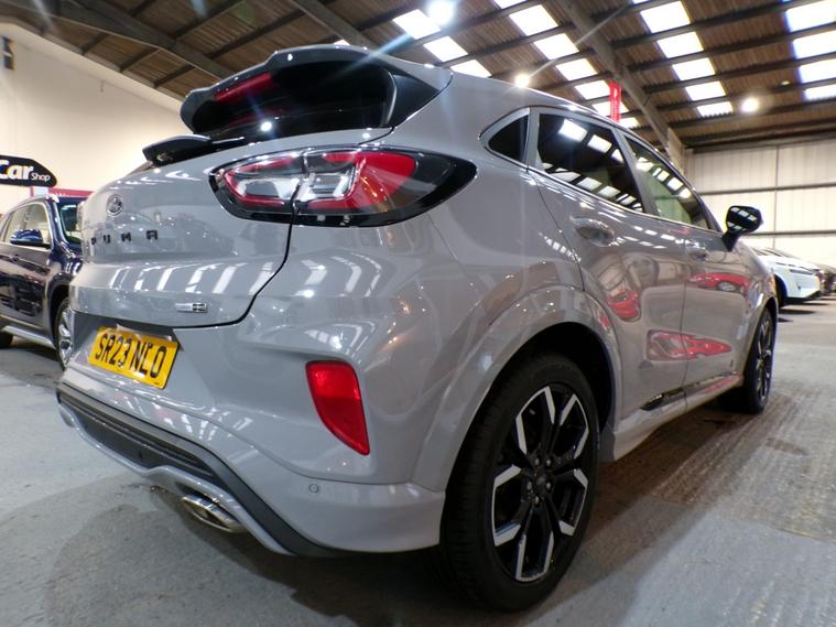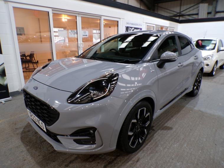 This 2023 Ford Puma ST-Line X is a superb example, boasting a full service history and having had only one owner from new. This stylish compact SUV is powered by an efficient 1.0 litre petrol hybrid engine, meeting Euro 6 emission standards. The ST-Line X trim level comes with a host of desirable features, including a handsfree power tailgate for effortless access, a winter pack with heated seats and steering wheel for those colder months, and electronic air temperature control for perfect cabin comfort. Parking is made simpler with rear parking sensors, and you can keep your devices topped up with the integrated wireless charging pad. Experience impressive performance with a 0-62mph acceleration time of just 8.9 seconds, all while benefiting from excellent fuel economy, achieving up to 51 miles per gallon. This Ford Puma also boasts low CO2 emissions, making it a more environmentally conscious choice. These highlights demonstrate how this particular vehicle offers a compelling combination of performance, efficiency, and comfort, setting it apart from others in its class. For full details of this vehicle and to request a walk around video please give one of our dedicated sales team a call on 01616232251 PLEASE NOTE THAT CURRENTLY NOT ALL CARS ON SITE HAVE BEEN FULLY PREPARED TO SHOWROOM STANDARD. Therefore, appointments are preferred to give us a chance to check the car over prior to your visit. This is not compulsory and should you wish to visit the site without an appointment please just bear in mind the vehicles may still require all or some of their prep work. Thank you in anticipationof your patience. ALL CARS COME WITH AT LEAST A TEN MONTH INDEPENDANT MOT WITH ALL ADVISORIES COMPLETED PRIOR TO COLLECTION. ALL CARS HAVE AN OIL AND FILTER SERVICE (IF ONE IS DUE) PRIOR TO COLLECTION ALL OUR CARS ARE HPI CLEAR PART EXCHANGE WELCOME, VERY COMPETIVE VALUES OFFERED FINANCE OPTIONS ARE AVAILABLE , GREAT RATES OFFERED AND WE ARE FCA REGULATED. CARS CAN BE RESERVED FOR £100 AND THIS FEE IS FULLY REFUNDABLE.. Automated High-beam assist, Cruise control, Digital Instrument Cluster, Multifunction steering wheel, Navigation system, Windscreen heating, 3rd party sound system, Audio remote control, Digital radio, Front centre armrest, Front head restraints, Rear headrests, USB input, Rear side wing doors, Roof spoiler, Tailgate, Alarm, Cloth seat upholstery, Solid Paint, 18'' Alloy wheels, Tyre repair kit.