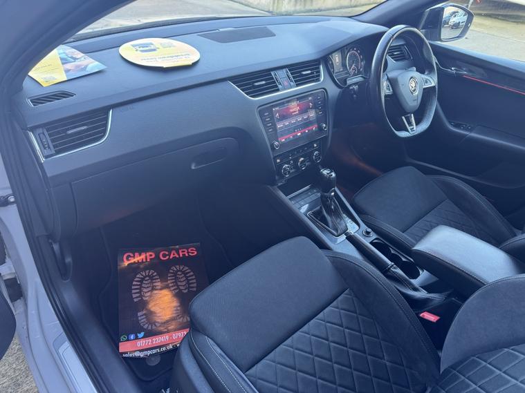 Skoda Octavia vrs Dsg auto 2.0 Tsi petrol estate Black Pack 2019 finished in meteor grey with (Black Pack) sport seats leather suede interior touchscreen media 8 speaker Amundsen sat Nav sound system 95000 miles with full service history front and rear parking sensors flat bottom leather steering wheel with cruise control lane assist speed limiter smart link plus interior ambient lighting body colour bumpers gloss black mirrors rear spoiler dab radio Bluetooth connection usb and aux connect luxury fitted interior mats privacy glass roof rails remote central locking dual control digital climate control air conditioning electric windows rain sensor wipers electric heated electric mirrors auto dimming mirrors front and rear centre arm rest cup holders rear split folding seats with isofix front adjustable seats glovebox cooling storage area front and rear headrests 18€ alloy wheels 5 star aa warranty Driveaway insurance available on request preston train station pickup service available on request uk delivery service on request look at our website for more details and more cars available indoor viewing by appointment only Gmp cars preston pr3 AA approved dealer all card payments accepted low rate finance deals available part exchange available 01772581403 excellent condition great combination Gmp cars . 12 months MOT, 3 months warranty, 3x3 point rear seat belts, ABS, Adjustable seats, Air Conditioning, Alarm, Alloy Wheels, Anti theft system, Anti-Glare Mirrors, Audio remote control, Automatic Lights, Automatic Windscreen Wipers, Bluetooth enabled, Body coloured bumpers, Central locking, Child locks, Child seats, Climate Control, Computer, Cruise Control, Driver airbag, Electric door mirrors, Electric Windows, Electrical adjustable seats, Electrically adjustable drivers seat, Electrically adjustable passenger seat, Electronic Stability Control (ESP), Folding rear seats, Front armrest, Front electric windows, Front fog lights, Front head restraints, Front Parking Sensors, Full Service History, Head restraints, Heated door mirrors, Heated screen, Height adjustable drivers seat, Immobiliser, Independent Inspection, Isofix child seat anchor points, Leather seat trim, Leather upholstery, Lumbar support, Metallic Paint, Multi function steering wheel, Navigation system, Park distance control, Part leather seat trim, PAS, Passenger airbag, Premium Sound, Radio/CD, Rear armrest, Rear electric windows, Rear headrests, Rear wiper, Remote central locking, Reverse parking aid, Roof rails, Service History, Service indicator, Spoiler, Sports seats, Steel wheels, Steering wheel rake adjustment, Steering wheel reach adjustment, Sunscreen glass, Traction control, Trip computer, V5 Document, Xenon Headlights.