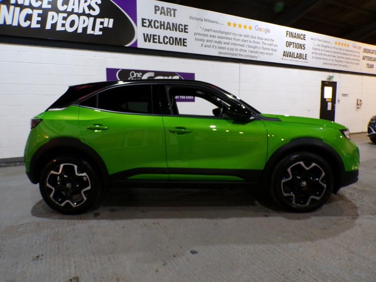 This 2024 Vauxhall Mokka Turbo Ultimate is a superb example, having had only one owner from new and boasting a full service history. This Euro 6 compliant 1.2 litre petrol model comes in the top of the range Ultimate trim, offering a sophisticated driving experience. You'll appreciate the convenience of the Panoramic Rear View Camera with parking assistance, complemented by front and rear parking distance sensors and side blind spot alert with flank guard. The IntelliLux LED Matrix headlights provide excellent visibility, while the 10 inch Multimedia Navi Pro system with live navigation seamlessly integrates Android Auto and Apple CarPlay, along with Bluetooth connectivity. The performance and efficiency of this Mokka Turbo Ultimate are truly impressive, indicating its superiority over similar vehicles. It achieves an excellent fuel economy of 48 miles per gallon, making it an economical choice for your journeys. Furthermore, its low CO2 emissions contribute to a more environmentally friendly drive. With an acceleration of 0 to 60 miles per hour in just 9.2 seconds, this Vauxhall Mokka offers a responsive and engaging performance. For full details of this vehicle and to request a walk around video please give one of our dedicated sales team a call on 01616232251 PLEASE NOTE THAT CURRENTLY NOT ALL CARS ON SITE HAVE BEEN FULLY PREPARED TO SHOWROOM STANDARD. Therefore, appointments are preferred to give us a chance to check the car over prior to your visit. This is not compulsory and should you wish to visit the site without an appointment please just bear in mind the vehicles may still require all or some of their prep work. Thank you in anticipationof your patience. ALL CARS COME WITH AT LEAST A TEN MONTH INDEPENDANT MOT WITH ALL ADVISORIES COMPLETED PRIOR TO COLLECTION. ALL CARS HAVE AN OIL AND FILTER SERVICE (IF ONE IS DUE) PRIOR TO COLLECTION ALL OUR CARS ARE HPI CLEAR PART EXCHANGE WELCOME FINANCE OPTIONS AVAILABLE CARS CAN BE RESERVED FOR £100 WHICH IS FULLY REFUNDABLE.