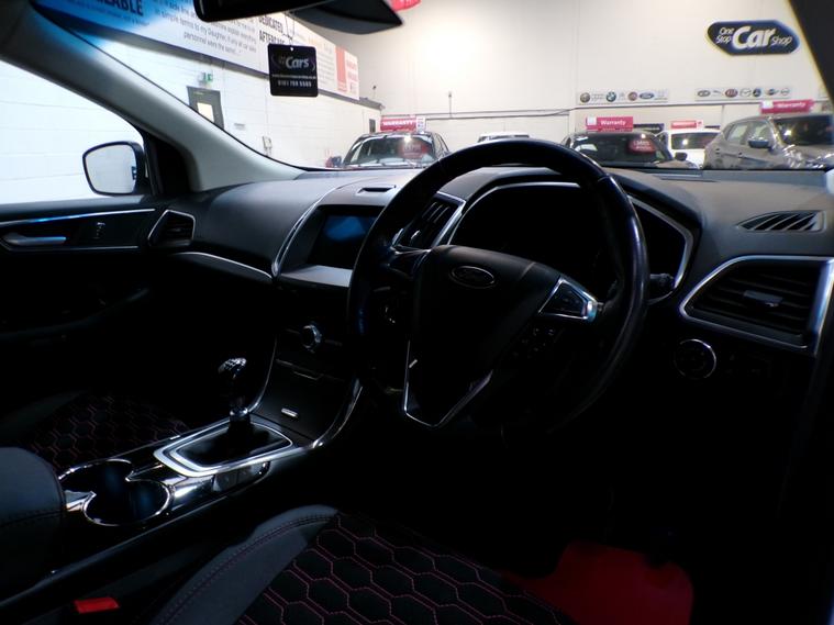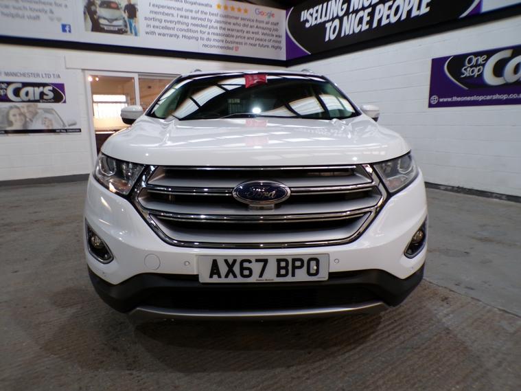 Boasting exceptionally low mileage for its age, this 2018 Ford Edge TDCi Titanium presents a superb ownership proposition. Powered by a robust 2.0L Diesel engine and featuring Four Wheel Drive capability, this Euro 6 compliant model offers impressive efficiency with a highlighted fuel economy of 49 mpg. Its provenance is further assured with a full service history and a 12 month MOT provided on purchase, ensuring peace of mind for the next owner. This Titanium trim level is equipped with a host of desirable features designed for comfort and convenience. Stay connected and entertained with the SYNC 3 system, complete with Bluetooth and Voice Control, all accessed via an 8in colour touchscreen that also includes Emergency Assistance. Effortlessly access the generous boot space with the Handsfree Power Tailgate and Keyless Entry system. Inside, you'll find Heated Front Sports Seats and DEATC Dual-Zone Electronic Automatic Temperature Control for a comfortable cabin environment, while Front and Rear Parking Sensors make manoeuvring simple. It will come with a three month Warranty which includes full roadside assist breakdown cover, provided by a trading standard approved company. For full details of this vehicle and to request a walk around video please give one of our dedicated sales team a call on 01616232251 PLEASE NOTE THAT CURRENTLY NOT ALL CARS ON SITE HAVE BEEN FULLY PREPARED TO SHOWROOM STANDARD. Therefore, appointments are preferred to give us a chance to check the car over prior to your visit. This is not compulsory and should you wish to visit the site without an appointment please just bear in mind the vehicles may still require all or some of their prep work. Thank you in anticipationof your patience. ALL CARS COME WITH AT LEAST A TEN MONTH INDEPENDANT MOT WITH ALL ADVISORIES COMPLETED PRIOR TO COLLECTION. ALL CARS HAVE AN OIL AND FILTER SERVICE (IF ONE IS DUE) PRIOR TO COLLECTION ALL OUR CARS ARE HPI CLEAR PART EXCHANGE WELCOME, VERY COMPETIVE VALUES OFFERED FINANCE OPTIONS ARE AVAILABLE , GREAT RATES OFFERED AND WE ARE FULLY FCA REGULATED.. Automated High-beam assist, Bluetooth connection, Cruise control, Electric tailgate, Front parking sensor, Gesture tailgate/bootlid opening and closing, Heated front seat, Navigation system, PAS, Park assist camera, Rear parking sensor, Rear wiper, Reverse parking aid, Service indicator, Steering wheel mounted controls, Traffic sign recognition, Trip computer, Windscreen heating, Auxiliary input socket, Climate control, Digital radio, Folding rear seats, Front armrest, Front electric windows, Lumbar support, Mobile phone App interface, Rear headrests, Sports seats, Steering wheel rake adjustment, Steering wheel reach adjustment, USB/iPod interface, Door mirrors electrically foldable, Front fog lights, LED rear lights, Roof rails, Space saver spare wheel, 3x3 point rear seat belts, ABS, Collision avoidance braking, Curtain airbags, Drivers airbag, ESP, Isofix child seat anchor points, Lane departure warning, Passenger airbag, Rear airbags, Side airbags, Traction control, Tyre pressure monitor, Alarm, Immobiliser, Remote central locking, Cloth seat trim, Solid Paint, Alloy wheels.