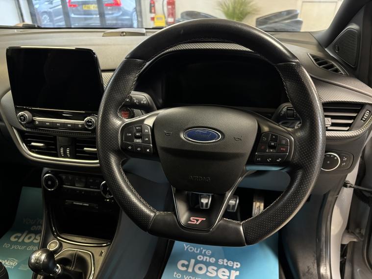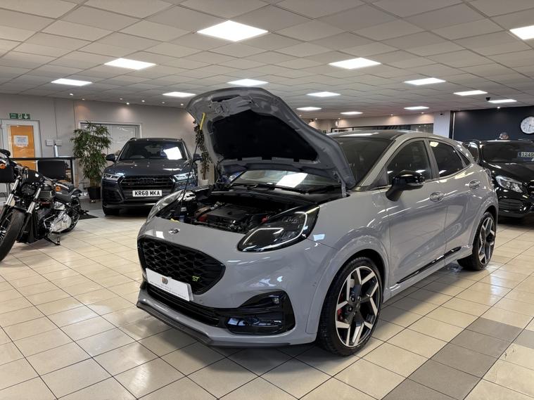 Ford Puma 1.5T EcoBoost ST €“ Grey Matter €“ Performance Pack €“ Low Rate Finance Available Stunning Ford Puma ST finished in the sought-after Grey Matter with Full Service History and 12 Months MOT, offering an exceptional blend of performance, technology, and everyday practicality. This example comes with an impressive factory specification, including the Performance Pack, Driver Assistance Pack, and Winter Pack, making it one of the best-equipped Puma STs on the market. Key Features & Specification: 1.5T EcoBoost ST Performance Model Full Service History 12 Months MOT Performance Pack Driver Assistance Pack Winter Pack Heated Recaro Sports Seats Keyless Go Phone Mirroring (Apple CarPlay / Android Auto) Wireless Phone Charging Satellite Navigation Digital Driver Display Reverse Camera Park Assist Privacy Glass Climate Control DAB Radio & Bluetooth Multifunction Steering Wheel with Cruise Control Auto Lights & Auto Wipers Power Folding Heated Mirrors 19€ Diamond Cut Alloy Wheels Black Pack: Black Roof & Black Mirror Caps Additional Benefits: LOW RATE FINANCE OPTIONS AVAILABLE 12 MONTHS AA BREAKDOWN COVER 3 MONTHS WARRANTY INCLUDED Instant price given on all part exchanges This vehicle has been well cared for and drives exactly as an ST should€”responsive, engaging, and refined. A fantastic performance crossover that stands out from the crowd. About Us: We are a family-run business, conveniently located just off Junction 28 of the M1 in Alfreton, and only a 2-minute walk from the local train station. Out of hours enquiries: 01773802192 Early viewing is highly recommended€”this Puma ST will not stay around for long.. Automated High-beam assist, Cruise control, Digital Instrument Cluster, Keyless go, Multifunction steering wheel, Navigation system, Windscreen heating, 3rd party sound system, Audio remote control, Digital radio, Front centre armrest, Front head restraints, Heated steering wheel, Rear headrests, USB input, Alarm, Partial leather seat upholstery, Premium Paint, 19'' Alloy wheels, Tyre repair kit.