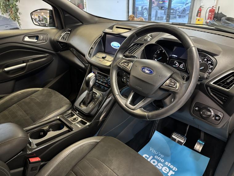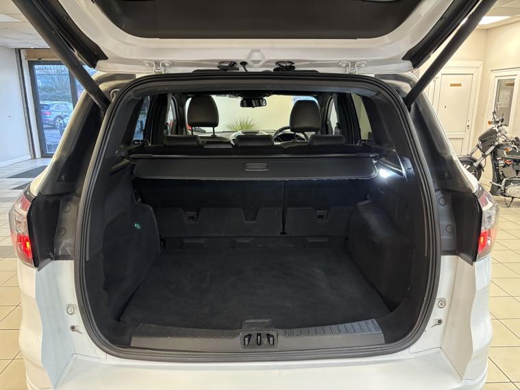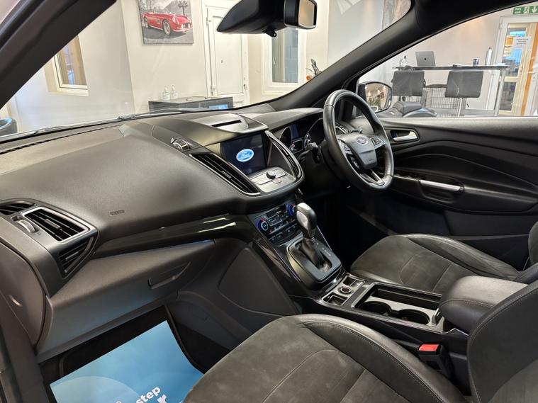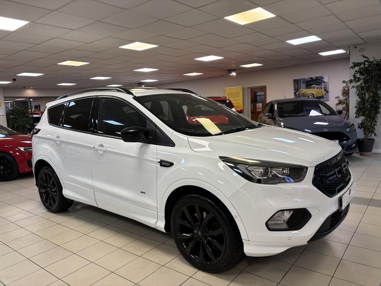 Ford Kuga 2.0 TDCi ST-Line X Powershift AWD | Polar White | 2017/67 A fantastic example of the ever-popular Ford Kuga ST-Line X, finished in stunning Polar White and backed up with an excellent service history. This is the desirable 2.0 TDCi Powershift AWD model, offering strong performance with confident all-wheel-drive capability. 8 service stamps €“ last serviced just 2, 000 miles ago 12 months MOT Smooth automatic Powershift gearbox High Specification Includes: 19 Gloss Black Alloy Wheels Panoramic Glass Roof Keyless Entry & Start Reverse Camera & Park Assist Self-Park Function Power Tailgate Half Leather Heated Seats Privacy Glass LED Daytime Running Lights Cruise Control SYNC 3 Infotainment Satellite Navigation DAB Radio Bluetooth Phone Mirroring (Apple CarPlay / Android Auto) This Kuga drives superbly and is equally suited to family use or motorway cruising, combining comfort, technology, and sporty ST-Line styling. LOW RATE FINANCE OPTIONS AVAILABLE 12 MONTHS AA BREAKDOWN COVER INCLUDED 3 MONTHS WARRANTY INCLUDED Instant price given on all part exchanges We are a family-run business, conveniently located just off Junction 28 of the M1 in Alfreton, only a 2-minute walk from the local train station. Out of hours enquiries welcome €“ 01773802192. Cruise control, Front parking sensor, Heated front seat, Navigation system, PAS, Rear parking sensor, Rear wiper, Reverse parking aid, Steering wheel mounted controls, Trip computer, Windscreen heating, 2 zone climate control, Audio remote control, Auxiliary input socket, Digital radio, Electrically adjustable drivers seat, Folding rear seats, Front electric windows, Front head restraints, Height adjustable drivers seat, Lumbar support, OEM sound system, Rear armrest, Rear electric windows, Rear headrests, Sports seats, Steering wheel rake adjustment, Steering wheel reach adjustment, USB/iPod interface, Body coloured bumpers, Door mirrors electrically foldable, Electric door mirrors, Electric sunroof, Heated door mirrors, LED daytime running lights, Opening panoramic glass roof, Roof rails, Space saver spare wheel, Sport suspension, 3x3 point rear seat belts, ABS, Curtain airbags, Drivers airbag, ESP, Isofix child seat anchor points, Passenger airbag, Rear airbags, Side airbags, Traction control, Tyre pressure monitor, Alarm, Immobiliser, Remote central locking, Partial leather seat trim, Solid Paint, Alloy wheels.
