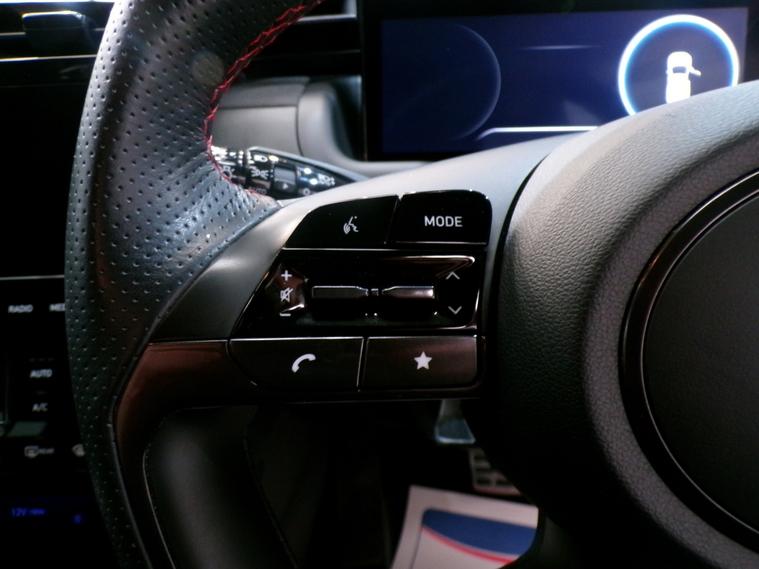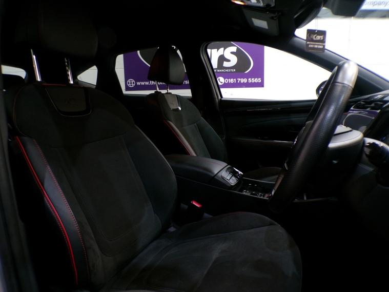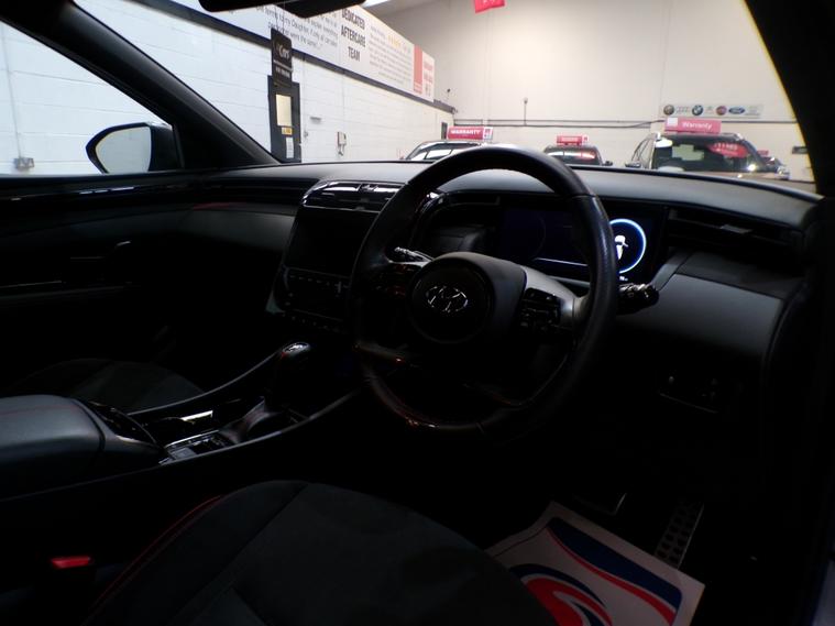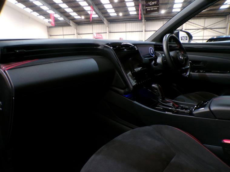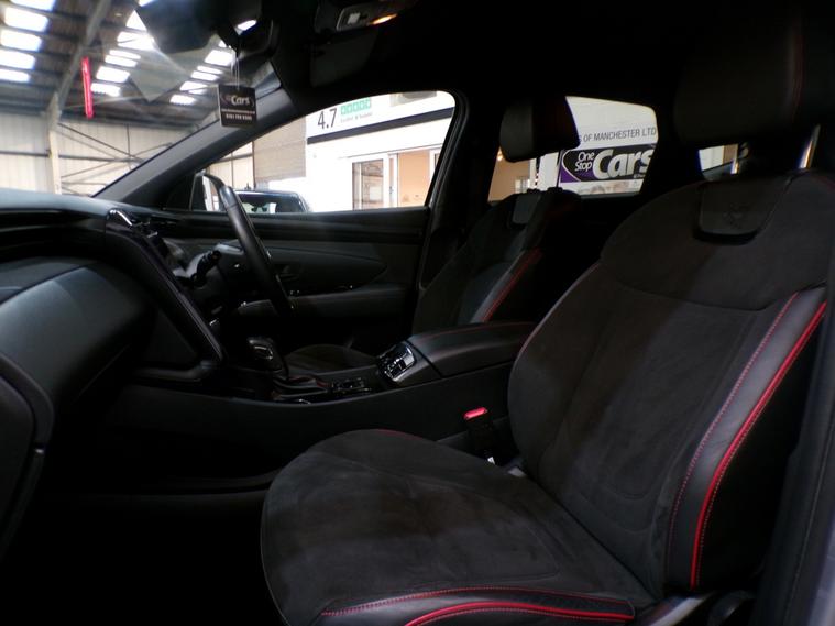 This 2023 Hyundai TUCSON T-GDi N Line is a standout choice, having been owned by just one careful owner from new and boasting two keys and a full service history for your peace of mind. This Euro 6 compliant model features a 1.6 litre petrol hybrid engine, ensuring an efficient and responsive drive. You'll also benefit from a February 2027 MOT, offering further reassurance. The N Line trim level enhances the already impressive TUCSON with a range of desirable features. Stay connected and entertained with Bluetooth connectivity and Android Auto for seamless phone integration. For convenience and safety, enjoy automatic headlights with a dusk sensor and a rear camera parking system. This particular TUCSON also offers generous boot space, making it ideal for all your needs. It will come with a three month Warranty which includes full roadside assist breakdown cover, provided by a trading standard approved company. For full details of this vehicle and to request a walk around video please give one of our dedicated sales team a call on 01616232251 PLEASE NOTE THAT CURRENTLY NOT ALL CARS ON SITE HAVE BEEN FULLY PREPARED TO SHOWROOM STANDARD. Therefore, appointments are preferred to give us a chance to check the car over prior to your visit. This is not compulsory and should you wish to visit the site without an appointment please just bear in mind the vehicles may still require all or some of their prep work. Thank you in anticipationof your patience. ALL CARS COME WITH AT LEAST A TEN MONTH INDEPENDANT MOT WITH ALL ADVISORIES COMPLETED PRIOR TO COLLECTION. ALL CARS HAVE AN OIL AND FILTER SERVICE (IF ONE IS DUE) PRIOR TO COLLECTION ALL OUR CARS ARE HPI CLEAR PART EXCHANGE WELCOME, VERY COMPETIVE VALUES OFFERED FINANCE OPTIONS ARE AVAILABLE , GREAT RATES OFFERED AND WE ARE FULLY FCA REGULATED, WHY NOT LET US GIVE YOU A QUOTE? CARS CAN BE RESERVED FOR UP TO 5 DAYS FOR £100. THE RESERVATION FEE IS FULLY REFUNDABLE , NO QUESTIONS ASKED OUR CARS ARE PRICE CHECKED DAILY TO ENSURE GREAT PRICES. ALL MAJOR CREDIT / DEBIT CARDS ACCEPTED.. Automated High-beam assist, Cruise control, Digital Instrument Cluster, Keyless go, Multifunction steering wheel, Navigation system, Steering wheel audio controls, Trip computer, Voice control for navigation system, Windscreen heating, 12V power outlet in luggage area, Ambient lighting, Audio remote control, Cooled glove box, Digital radio, Front centre armrest, Front head restraints, Front interior 12V power outlet, OEM sound system, Rear armrest, Rear headrests, Steering wheel manually adjustable, Steering wheel rake adjustment, Steering wheel reach adjustment, Touchscreen media control, USB input, Body coloured bumpers, Rear side wing doors, Roof rails, Alarm, Immobiliser, Remote central locking, Leather seat upholstery, Partial leather seat upholstery, Solid Paint, 19'' Alloy wheels, Locking wheel nuts, Tyre repair kit.