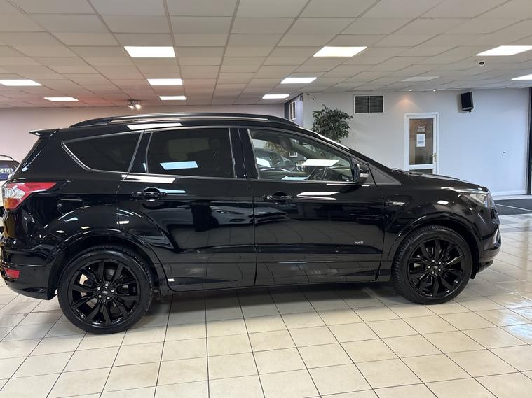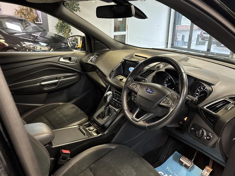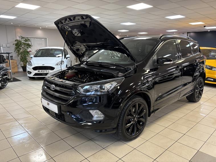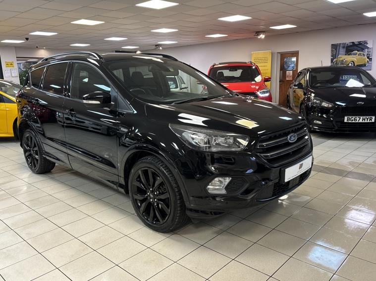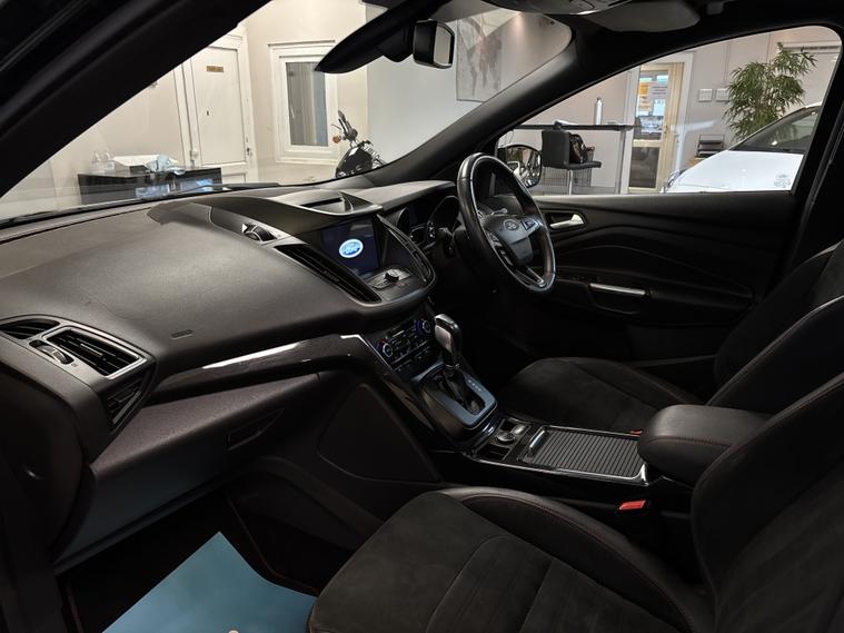 Ford Kuga 1.5T EcoBoost ST-Line X Auto AWD €“ Panther Black A superb example of the highly desirable Ford Kuga ST-Line X AWD Automatic, finished in sleek Panther Black and offering comfort, performance, and practicality in one premium SUV package. Backed by a comprehensive service history and supplied with 12 months MOT, this Kuga is ready to drive away. Vehicle Highlights & Specification: 1.5T EcoBoost Petrol Engine Automatic Transmission All-Wheel Drive (AWD) ST-Line X Specification Panther Black Paintwork Comprehensive Service History 12 Months MOT Features Include: Panoramic Glass Roof 19 Gloss Black Alloy Wheels Privacy Glass SYNC 3 Infotainment System Satellite Navigation Bluetooth & DAB Radio Apple CarPlay / Android Auto (Phone Mirroring) Keyless Entry & Keyless Go Power Folding Mirrors Park Assist / Self-Park System Front & Rear Parking Sensors Auto Lights Auto Wipers Heated Front Seats Cruise Control Power Tailgate / Electric Boot What€™s Included: Low Rate Finance Options Available 12 Months AA Breakdown Cover 3 Months Warranty Instant price given on all part exchanges We are a family-run business, conveniently located just off Junction 28 of the M1 in Alfreton, and only a 2-minute walk from the local train station, making us easy to reach. Out-of-hours enquiries: 01773802192 Early viewing highly recommended €“ this ST-Line X won€™t stay on the market for long.. Bluetooth connection, Cruise control, Front parking sensor, Heated front seat, Navigation system, PAS, Rear parking sensor, Rear wiper, Reverse parking aid, Self parking system, Steering wheel mounted controls, Trip computer, Windscreen heating, 2 zone climate control, Audio remote control, Auxiliary input socket, Digital radio, Electrically adjustable drivers seat, Folding rear seats, Front electric windows, Front head restraints, Height adjustable drivers seat, Lumbar support, OEM sound system, Rear armrest, Rear electric windows, Rear headrests, Sports seats, Steering wheel rake adjustment, Steering wheel reach adjustment, USB/iPod interface, Body coloured bumpers, Door mirrors electrically foldable, Electric door mirrors, Electric sunroof, Heated door mirrors, LED daytime running lights, Opening panoramic glass roof, Roof rails, Space saver spare wheel, Sport suspension, 3x3 point rear seat belts, ABS, Curtain airbags, Drivers airbag, ESP, Isofix child seat anchor points, Passenger airbag, Rear airbags, Side airbags, Traction control, Tyre pressure monitor, Alarm, Immobiliser, Remote central locking, Partial leather seat trim, Solid Paint, Alloy wheels.