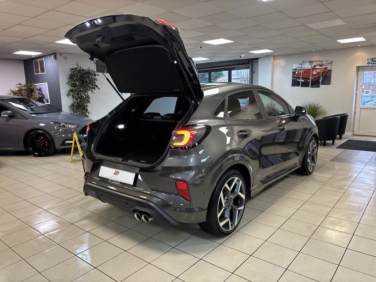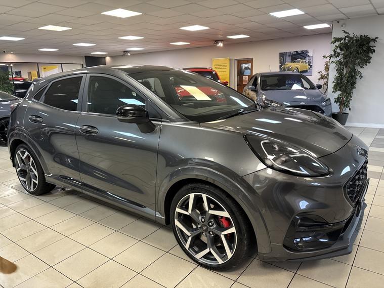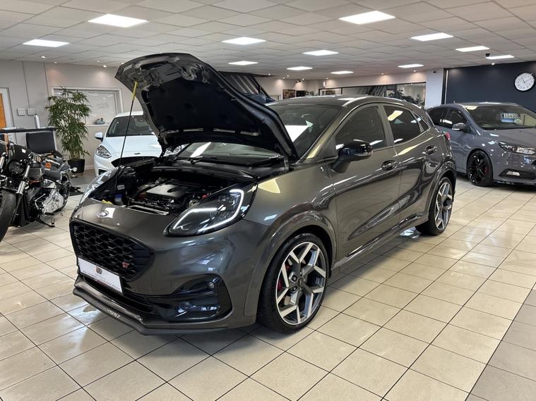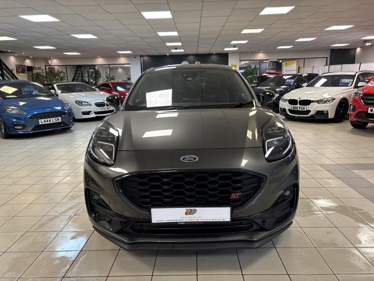 Ford Puma 1.5T EcoBoost ST Mountune | Performance Pack | Huge Spec 2021 / 70 Plate | Magnetic Grey | 1 Owner Here we have a stunning Ford Puma ST finished in Magnetic Grey, upgraded with a Mountune performance upgrade and boasting a huge factory spec. A genuine performance SUV with sharp handling, everyday practicality and serious road presence. Performance & Driving 1.5T EcoBoost ST Mountune Upgrade Performance Pack Drive Select Modes ST Sports Suspension 19€ Alloy Wheels with Red Brake Calipers Driver Assistance & Technology Driver Assistance Pack Front & Rear Parking Sensors Reverse Camera Virtual Digital Dashboard Satellite Navigation DAB Radio Bluetooth Apple CarPlay / Android Auto Wireless Phone Charging Comfort & Convenience Winter Pack Heated Recaro Sports Seats Heated Steering Wheel Dual Zone Climate Control Keyless Entry & Keyless Go Multifunction Steering Wheel with Cruise Control Styling Highlights Magnetic Grey Metallic Black Roof Black Mirror Caps Privacy Glass Ownership & Peace of Mind 1 Owner from New Full Ford Service History Just Serviced Just MOT€™d LOW RATE FINANCE OPTIONS AVAILABLE 12 Months AA Breakdown Cover 3 Months Warranty Included Part Exchange Instant price given on all part exchanges About Us We are a family-run business, conveniently located just off Junction 28 of the M1 in Alfreton, only a 2-minute walk from the local train station.. Automated High-beam assist, Cruise control, Digital Instrument Cluster, Keyless go, Multifunction steering wheel, Navigation system, Windscreen heating, 3rd party sound system, Audio remote control, Digital radio, Front centre armrest, Front head restraints, Heated steering wheel, Rear headrests, USB input, Alarm, Partial leather seat upholstery, Premium Paint, 19'' Alloy wheels, Tyre repair kit.