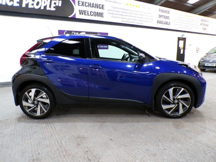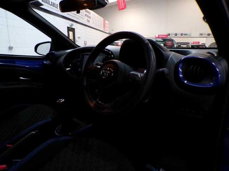 This 2023 Toyota Aygo X VVT-i Edge presents an exceptional ownership proposition with its remarkably low mileage of just 16101 miles, two keys and a full service history. This single owner vehicle, registered in 2023, boasts a Euro 6 compliant 1.0L petrol engine and comes with an MOT valid until January 2027, offering peace of mind for years to come. Inside, you'll find a host of convenient features designed to enhance your driving experience, including automatic air conditioning with climate control, Bluetooth connectivity for seamless phone integration, and smartphone integration supporting both Apple CarPlay and Android Auto. The advanced Toyota Safety Sense suite, featuring adaptive cruise control, further adds to the vehicle's appeal, alongside a reversing camera for effortless parking assistance. The Aygo X Edge stands out with its impressive fuel economy, achieving a remarkable 59 miles per gallon, which indicates it is more economical than many similar vehicles. Furthermore, its low insurance group and low CO2 emissions highlight its cost effectiveness and environmental consideration, making it a sensible choice for everyday driving. It will come with a three month Warranty which includes full roadside assist breakdown cover, provided by a trading standard approved company. For full details of this vehicle and to request a walk around video please give one of our dedicated sales team a call on 01616232251 PLEASE NOTE THAT CURRENTLY NOT ALL CARS ON SITE HAVE BEEN FULLY PREPARED TO SHOWROOM STANDARD. Therefore, appointments are preferred to give us a chance to check the car over prior to your visit. This is not compulsory and should you wish to visit the site without an appointment please just bear in mind the vehicles may still require all or some of their prep work. Thank you in anticipationof your patience. ALL CARS COME WITH AT LEAST A TEN MONTH INDEPENDANT MOT WITH ALL ADVISORIES COMPLETED PRIOR TO COLLECTION. ALL CARS HAVE AN OIL AND FILTER SERVICE (IF ONE IS DUE) PRIOR TO COLLECTION ALL OUR CARS ARE HPI CLEAR PART EXCHANGE WELCOME. Adaptive cruise control, Multifunction steering wheel, Speed limit display, Steering wheel audio controls, Steering wheel with cruise control operation, Audio remote control, Digital radio, Front head restraints, Front interior 12V power outlet, OEM sound system, Rear headrests, Steering wheel manually adjustable, Steering wheel reach adjustment, USB input, Body coloured bumpers, Rear side wing doors, Immobiliser, Cloth seat upholstery, Metallic Paint, Premium Paint, 18'' Alloy wheels, Alloy wheels, Tyre repair kit.
