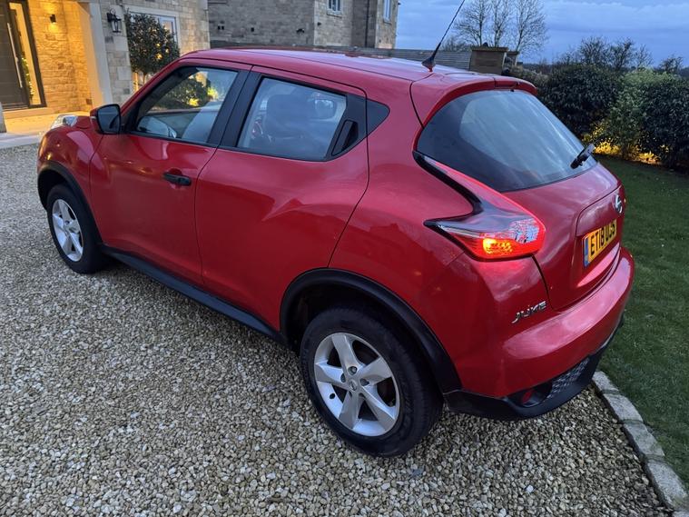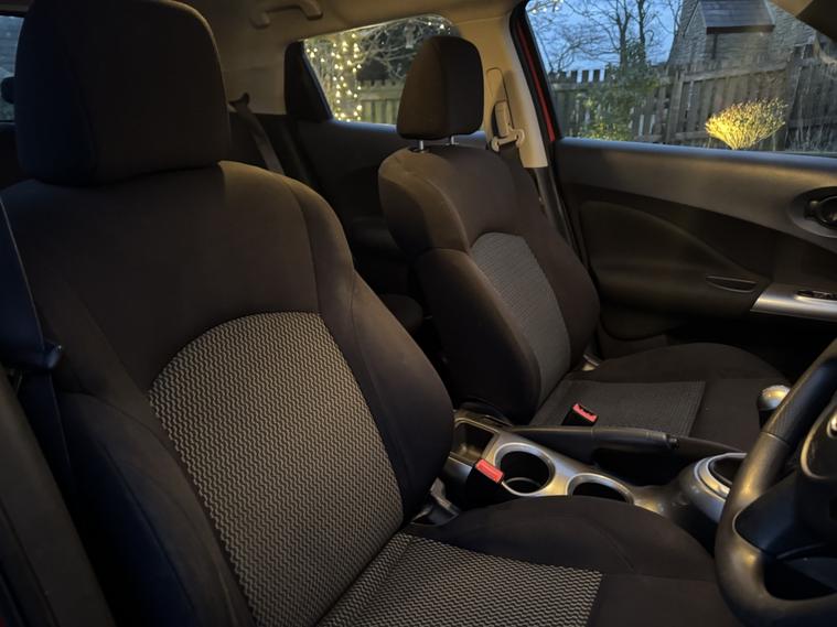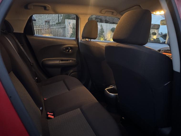 Nissan Juke 1.6 visia 5 dr hatch 94-bhp petrol 2018 euro 6 1 previous owner from new with 63000 miles - new mot Feb 2027 no advisories great specification that includes alloy wheels air conditioning electric windows central locking leather steering wheel split folding rear seats with isofix adjustable front seats glovebox cooling cup holders front and rear- front and rear headrests trip computer usb and aux connectivity body colour bumpers and mirrors electric heated door mirrors chrome exhaust finish led daytime running lights front fog lights vanity mirrors interior map reading lights child locks tyre monitors great tyres all round alarm immobiliser system just been fully valeted and exterior polished like new drives excellent 5 star warranty drive away insurance available uk delivery service available Preston train station pick up service available on request indoor viewing by appointment only- Watsapp for a walk round video check out our website for more pictures and more details more cars available low rate finance deals available all card payments taken Gmp cars Preston pr3 . PAS, Rear wiper, Service indicator, Trip computer, Windscreen heating, Auxiliary input socket, OEM sound system, Steering wheel rake adjustment, LED Indicator lights, , 3x3 point rear seat belts, ABS, Curtain airbags, Drivers airbag, ESP, Passenger airbag, Rear airbags, Side airbags, Traction control, Tyre pressure monitor, Tyre repair kit.