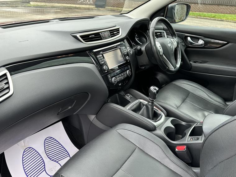 Due to arrive this week a lovely example nissan Qashqai tekna high specification with good service history two keys, panoramic roof and satellite navigation plus cruise control climate control a very nice car Part exchange is welcome. Finance is available.. Automated High-beam assist, Bluetooth connection, Cruise control, Front parking sensor, Front view camera, Heated front seat, Navigation system, PAS, Park assist camera, Rear parking sensor, Rear wiper, Reverse parking aid, Self parking system, Service indicator, Steering wheel mounted controls, Surround view, Traffic sign recognition, Trip computer, Windscreen heating, 2 zone climate control, Audio remote control, Auxiliary input socket, Digital radio, Electrically adjustable drivers seat, Electrically adjustable passenger seat, Folding rear seats, Front armrest, Front electric windows, Front head restraints, Height adjustable drivers seat, Lumbar support, OEM sound system, Radio/CD, Rear armrest, Rear electric windows, Rear headrests, Steering wheel rake adjustment, Steering wheel reach adjustment, USB/iPod interface, Body coloured bumpers, Door mirrors electrically foldable, Electric door mirrors, Front fog lights, Heated door mirrors, LED daytime running lights, LED headlights, Opening panoramic glass roof, Roof rails, 3x3 point rear seat belts, ABS, Blind spot information, Collision avoidance braking, Curtain airbags, Drivers airbag, ESP, Isofix child seat anchor points, Lane departure warning, Passenger airbag, Side airbags, Traction control, Tyre pressure monitor, Alarm, Immobiliser, Remote central locking, Leather seat trim, Solid Paint, Alloy wheels, Tyre repair kit.
