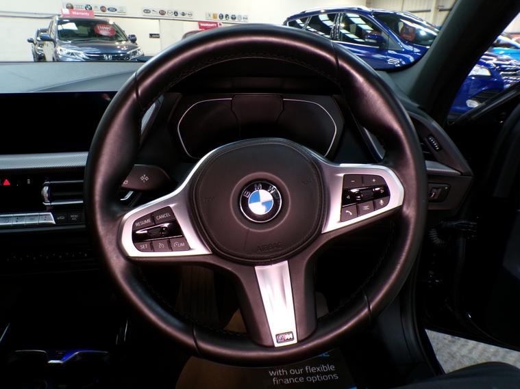 This 2020 BMW 1 Series 118i M Sport boasts just one former keeper, two keys and a full service history , offering excellent provenance. This Euro 6 compliant model features a responsive 1.5L petrol engine and comes equipped with M Sport trim, enhancing its sporty appeal. You'll appreciate the convenience of LED headlights, Bluetooth connectivity for both audio streaming and hands free calls, and a USB audio interface. The rain sensor automatically activates the headlights, and the BMW Live Cockpit Plus provides an intuitive driving experience. With its MOT valid until December 2026, this car is ready for the road. The BMW 1 Series 118i M Sport offers a compelling blend of performance and practicality. Its acceleration from 0 to 62mph in just 8.5 seconds demonstrates its lively performance, a key indicator of its dynamic capabilities compared to other vehicles in its class. Furthermore, the generous boot space ensures you have ample room for luggage or shopping, making it a versatile choice for everyday use and longer journeys. It will come with a three month Warranty which includes full roadside assist breakdown cover, provided by a trading standard approved company. For full details of this vehicle and to request a walk around video please give one of our dedicated sales team a call on 01616232251 PLEASE NOTE THAT CURRENTLY NOT ALL CARS ON SITE HAVE BEEN FULLY PREPARED TO SHOWROOM STANDARD. Therefore, appointments are preferred to give us a chance to check the car over prior to your visit. This is not compulsory and should you wish to visit the site without an appointment please just bear in mind the vehicles may still require all or some of their prep work. Thank you in anticipationof your patience. ALL CARS COME WITH AT LEAST A TEN MONTH INDEPENDANT MOT WITH ALL ADVISORIES COMPLETED PRIOR TO COLLECTION. ALL CARS HAVE AN OIL AND FILTER SERVICE (IF ONE IS DUE) PRIOR TO COLLECTION ALL OUR CARS ARE HPI CLEAR PART EXCHANGE WELCOME, VERY COMPETIVE VALUES OFFERED FINANCE OPTIONS ARE AVAILABLE , GREAT RATES OFFERED AND WE ARE FULLY FCA REGULATED.. Automated High-beam assist, Bluetooth connection, Cruise control, Digital Instrument Cluster, Front parking sensor, Head up display, Heated front seat, Keyless go, Navigation system, PAS, Park assist camera, Rear parking sensor, Rear wiper, Reverse parking aid, Self parking system, Steering wheel mounted controls, Trip computer, 2 zone climate control, Audio remote control, Digital radio, Folding rear seats, Front electric windows, Front head restraints, Height adjustable drivers seat, Mobile phone App interface, Rear electric windows, Rear headrests, Sports seats, Steering wheel reach adjustment, Wireless mobile phone charging, Door mirrors electrically foldable, Electric door mirrors, Heated door mirrors, LED Foglights, LED Indicator lights, LED daytime running lights, LED headlights, Sport suspension, 3x3 point rear seat belts, ABS, Collision avoidance braking, Curtain airbags, Drivers airbag, ESP, Isofix child seat anchor points, Lane departure warning, Passenger airbag, Side airbags, Traction control, Tyre pressure monitor, Alarm, Central locking, Immobiliser, Leather seat trim, Solid Paint, Alloy wheels, Tyre repair kit.