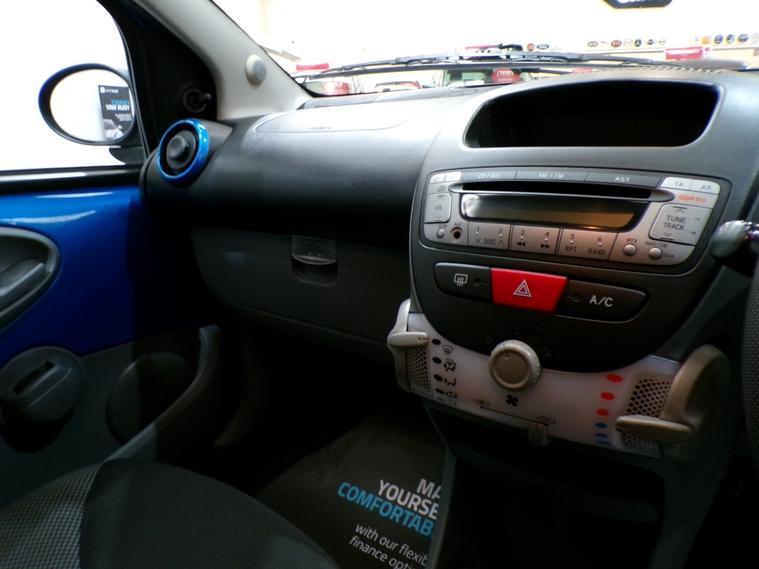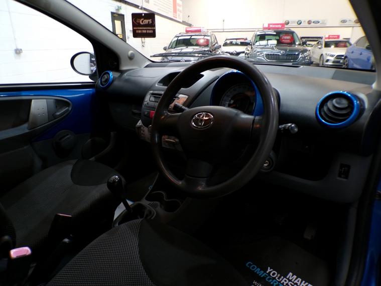 This 2010 Toyota AYGO VVT-i Blue is offered with a full 12 months MOT for your peace of mind. This popular hatchback features a 1.0L petrol engine and comes in the attractive Blue trim. It has a nine stamp service history and two keys. The AYGO VVT-i Blue stands out with its impressive fuel economy, achieving up to 63 miles per gallon, which is excellent for keeping running costs down. Furthermore, its low CO2 emissions mean it is kinder to the environment. This model also benefits from being in a low insurance group, making it an economical choice for many drivers. For full details of this vehicle and to request a walk around video please give one of our dedicated sales team a call on 01616232251 PLEASE NOTE THAT CURRENTLY NOT ALL CARS ON SITE HAVE BEEN FULLY PREPARED TO SHOWROOM STANDARD. Therefore, appointments are preferred to give us a chance to check the car over prior to your visit. This is not compulsory and should you wish to visit the site without an appointment please just bear in mind the vehicles may still require all or some of their prep work. Thank you in anticipationof your patience. ALL CARS COME WITH AT LEAST A TEN MONTH INDEPENDANT MOT WITH ALL ADVISORIES COMPLETED PRIOR TO COLLECTION. ALL CARS HAVE AN OIL AND FILTER SERVICE (IF ONE IS DUE) PRIOR TO COLLECTION ALL OUR CARS ARE HPI CLEAR PART EXCHANGE WELCOME, VERY COMPETIVE VALUES OFFERED FINANCE OPTIONS ARE AVAILABLE , GREAT RATES OFFERED AND WE ARE FULLY FCA REGULATED, WHY NOT LET US GIVE YOU A QUOTE? CARS CAN BE RESERVED FOR UP TO 5 DAYS FOR £100. THE RESERVATION FEE IS FULLY REFUNDABLE , NO QUESTIONS ASKED OUR CARS ARE PRICE CHECKED DAILY TO ENSURE GREAT PRICES. ALL MAJOR CREDIT / DEBIT CARDS ACCEPTED. WE ARE OPEN 6 DAYS A WEEK (CLOSED ON SUNDAYS) . CUSTOMER SERVICE IS CENTRAL TO OUR ETHOS WE ARE YOUR TRUSTED USED CAR SUPERMARKET, WITH OVER 100 CARS IN STOCK, AND ARE PROUD TO OFFER THE UNIQUE ONE STOP CAR BUYING EXPERIENCE. SELLING NICE CARS TO NICE PEOPLE. Air Conditioning, Bluetooth Preparation (Phone), Front Electric Windows, Height Adjustable Drivers Seat, Pollen Filter, Split Rear Seats, Steering Column - Adjustable, CD Radio, Power Assisted Steering (PAS), Anti Lock Brakes, Driver Airbag, Passenger Airbag, Remote Central Locking, Cloth Upholstery, Metallic Paint.