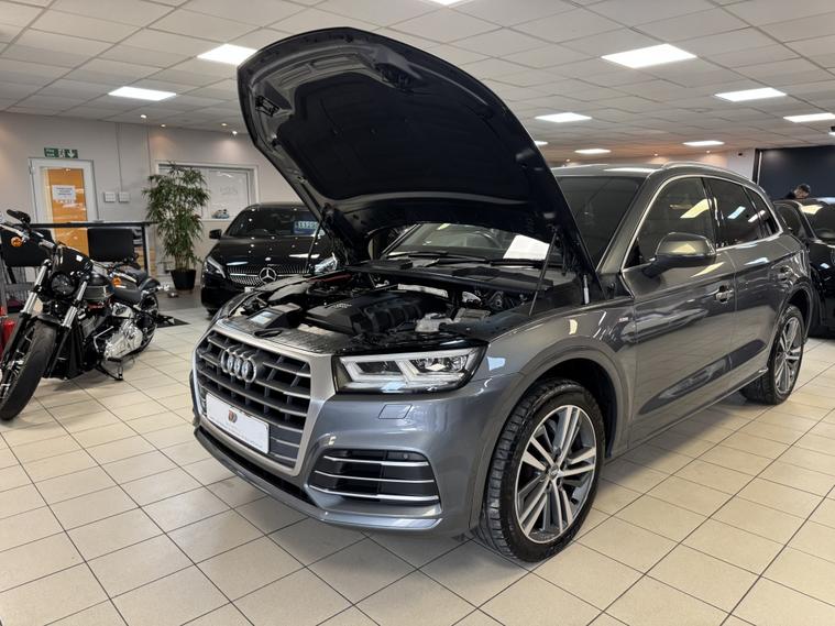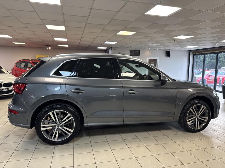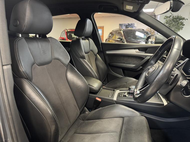 Audi Q5 2.0 TDI 40 S line S Tronic quattro €“ Quartz Grey | Virtual Cockpit | 20€ Alloys | FASH Stunning example finished in Quartz Grey with a superb specification and Full Audi Service History. This Q5 combines strong performance, quattro all-wheel drive confidence and excellent economy, all wrapped in the sporty S line styling. 2.0 TDI 40 S line S Tronic quattro Virtual Cockpit (Digital Dash) 20€ Diamond Cut Alloy Wheels Reverse Camera Front & Rear Parking Sensors Privacy Glass LED Daytime Running Lights Power Tailgate Power Folding Mirrors Heated Half Leather S line Seats Audi Drive Select Cruise Control Multifunction Steering Wheel with Paddle Shift Satellite Navigation DAB Radio & Bluetooth Connectivity Wireless Phone Charging Mechanically excellent €“ Haldex oil service just completed, ready to drive away with confidence. LOW RATE FINANCE OPTIONS AVAILABLE 12 MONTHS AA COVER INCLUDED 3 MONTHS WARRANTY INCLUDED Instant price given on all part exchanges We are a family-run business located just off Junction 28 of the M1 (Alfreton) and only a 2-minute walk from the local train station, making us easy to reach. Out of hours? Call 01773802192 A fantastic example of a well-maintained, high-spec Q5 €” viewing highly recommended.. Bluetooth connection, Cruise control, Electric tailgate, Front parking sensor, Heated front seat, Keyless go, Navigation system, PAS, Rear parking sensor, Rear wiper, Reverse parking aid, Service indicator, Steering wheel mounted controls, Trip computer, 3 zone climate control, Audio remote control, Auxiliary input socket, Digital radio, Folding rear seats, Front armrest, Front electric windows, Front head restraints, Height adjustable drivers seat, Internet connection, Lumbar support, Media storage, OEM sound system, Radio/CD, Rear electric windows, Rear headrests, Sports seats, Steering wheel rake adjustment, Steering wheel reach adjustment, USB/iPod interface, Body coloured bumpers, Electric door mirrors, Front fog lights, Headlight washers, Heated door mirrors, LED headlights, Roof rails, ABS, Collision avoidance braking, Curtain airbags, Drivers airbag, ESP, Isofix child seat anchor points, Passenger airbag, Side airbags, Traction control, Tyre pressure monitor, Alarm, Immobiliser, Remote central locking, Partial leather seat trim, Solid Paint, Alloy wheels, Tyre repair kit.