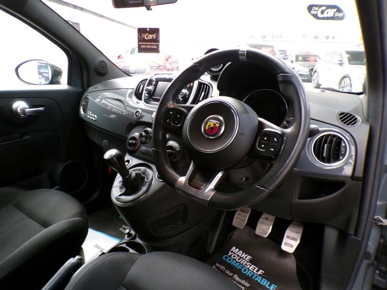 With MOT valid until January 2027, this 2017 Abarth 595 T-Jet offers excellent peace of mind for its next owner. This stylish 1.4L petrol model, meeting Euro 6 emissions standards, has covered a low mileage of just 38170 miles for its age and comes with two keys and a four stamp service history. Inside, you'll find a 5 inch touchscreen radio complete with Bluetooth connectivity for calls and music streaming, plus USB and DAB radio. Comfort is also a priority, with manual air conditioning to keep you cool and a passenger seat featuring a memory function. The Abarth 595 T-Jet stands out with its impressive performance, achieving 0 to 62 miles per hour in a swift 7.8 seconds. This brisk acceleration demonstrates its dynamic capabilities, setting it apart from many other vehicles in its class. It will come with a three month Warranty which includes full roadside assist breakdown cover, provided by a trading standard approved company. For full details of this vehicle and to request a walk around video please give one of our dedicated sales team a call on 01616232251 PLEASE NOTE THAT CURRENTLY NOT ALL CARS ON SITE HAVE BEEN FULLY PREPARED TO SHOWROOM STANDARD. Therefore, appointments are preferred to give us a chance to check the car over prior to your visit. This is not compulsory and should you wish to visit the site without an appointment please just bear in mind the vehicles may still require all or some of their prep work. Thank you in anticipationof your patience. ALL CARS COME WITH AT LEAST A TEN MONTH INDEPENDANT MOT WITH ALL ADVISORIES COMPLETED PRIOR TO COLLECTION. ALL CARS HAVE AN OIL AND FILTER SERVICE (IF ONE IS DUE) PRIOR TO COLLECTION ALL OUR CARS ARE HPI CLEAR PART EXCHANGE WELCOME, VERY COMPETIVE VALUES OFFERED FINANCE OPTIONS ARE AVAILABLE , GREAT RATES OFFERED AND WE ARE FULLY FCA REGULATED, WHY NOT LET US GIVE YOU A QUOTE? CARS CAN BE RESERVED FOR UP TO 5 DAYS FOR £100. THE RESERVATION FEE IS FULLY REFUNDABLE , NO QUESTIONS ASKED OUR CARS ARE PRICE CHECKED DAILY TO ENSURE GREAT PRICES. ALL MAJOR CREDIT / DEBIT CARDS ACCEPTED.. 12v Socket, Air Conditioning, Electric Seat Adjustment, Front Electric Windows, Height Adjustable Drivers Seat, Leather Steering Wheel, Power Assisted Steering (PAS), Anti Lock Brakes, Curtain Airbags, Driver Airbag, Electric Door Mirrors, Front Fog Lights, Passenger Airbag, Traction Control, Remote Central Locking, Cloth Upholstery, Solid Paint, Alloy Wheels.