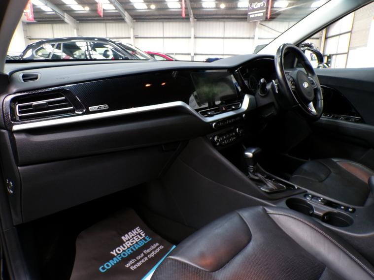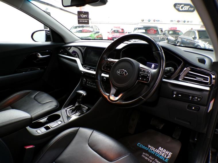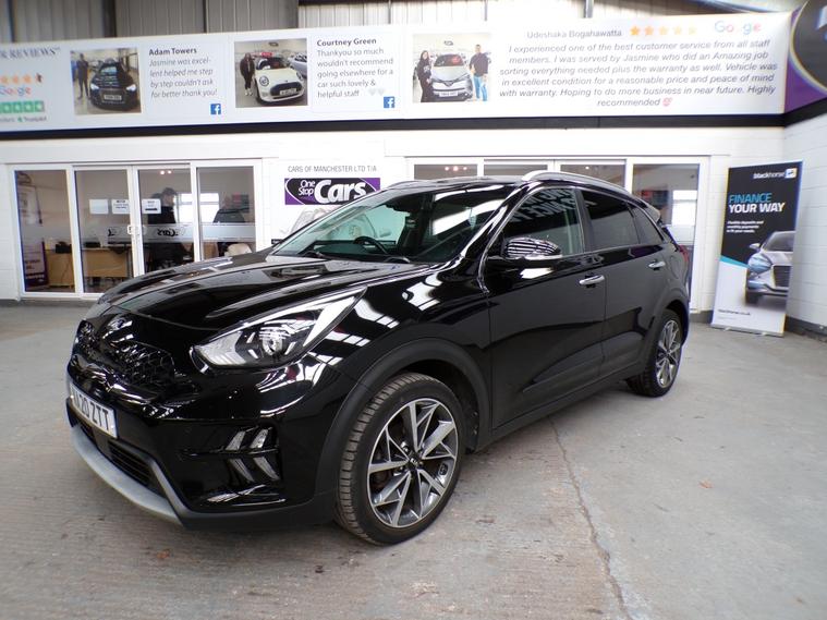 This 2020 Kia Niro GDi 3 offers excellent provenance with two keys, a full service history and 12 months MOT provided on purchase. This Euro 6 compliant 1.6 litre petrol hybrid model comes with a wealth of notable features designed to enhance your driving experience. These include a reversing camera system with parking assistance, adaptive smart cruise control with stop and go functionality, and automatic headlight control. For your convenience and connectivity, it also boasts Android Auto with voice control and heated front seats. The Kia Niro GDi 3 stands out with its impressive fuel economy, achieving up to 54 miles per gallon, which is better than many other vehicles in its class. It will come with a three month Warranty which includes full roadside assist breakdown cover, provided by a trading standard approved company. For full details of this vehicle and to request a walk around video please give one of our dedicated sales team a call on 01616232251 PLEASE NOTE THAT CURRENTLY NOT ALL CARS ON SITE HAVE BEEN FULLY PREPARED TO SHOWROOM STANDARD. Therefore, appointments are preferred to give us a chance to check the car over prior to your visit. This is not compulsory and should you wish to visit the site without an appointment please just bear in mind the vehicles may still require all or some of their prep work. Thank you in anticipationof your patience. ALL CARS COME WITH AT LEAST A TEN MONTH INDEPENDANT MOT WITH ALL ADVISORIES COMPLETED PRIOR TO COLLECTION. ALL CARS HAVE AN OIL AND FILTER SERVICE (IF ONE IS DUE) PRIOR TO COLLECTION ALL OUR CARS ARE HPI CLEAR PART EXCHANGE WELCOME, VERY COMPETIVE VALUES OFFERED FINANCE OPTIONS ARE AVAILABLE , GREAT RATES OFFERED AND WE ARE FULLY FCA REGULATED, WHY NOT LET US GIVE YOU A QUOTE? CARS CAN BE RESERVED FOR UP TO 5 DAYS FOR £100. THE RESERVATION FEE IS FULLY REFUNDABLE , NO QUESTIONS ASKED OUR CARS ARE PRICE CHECKED DAILY TO ENSURE GREAT PRICES. ALL MAJOR CREDIT / DEBIT CARDS ACCEPTED. WE ARE OPEN 6 DAYS A WEEK (CLOSED ON SUNDAYS) . CUSTOMER SERVICE IS CENTRAL TO OUR ETHOS. Adaptive cruise control, Automated High-beam assist, Bluetooth connection, Front parking sensor, Heated front seat, Navigation system, PAS, Park assist camera, Rear parking sensor, Rear wiper, Reverse parking aid, Steering wheel mounted controls, Trip computer, 2 zone climate control, Audio remote control, Digital radio, Electrically adjustable drivers seat, Folding rear seats, Front armrest, Front electric windows, Front head restraints, Height adjustable drivers seat, Lumbar support, Mobile phone App interface, OEM sound system, Rear armrest, Rear electric windows, Rear headrests, Steering wheel rake adjustment, Steering wheel reach adjustment, USB/iPod interface, Wireless mobile phone charging, Body coloured bumpers, Door mirrors electrically foldable, Electric door mirrors, Heated door mirrors, LED Foglights, LED Indicator lights, LED daytime running lights, LED rear lights, Roof rails, ABS, Collision avoidance braking, Curtain airbags, Drivers airbag, ESP, Isofix child seat anchor points, Lane departure warning, Passenger airbag, Side airbags, Traction control, Tyre pressure monitor, Alarm, Immobiliser, Remote central locking, Leather seat trim, Solid Paint, Alloy wheels, Tyre repair kit.