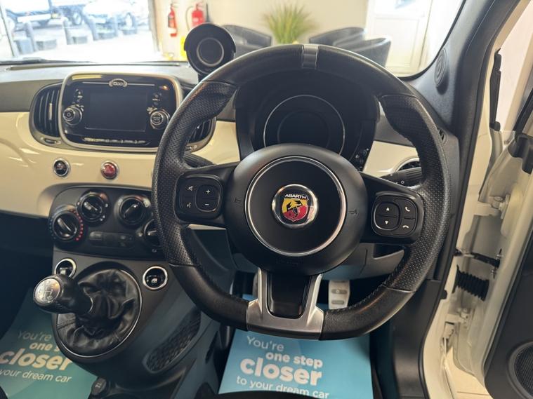 We are pleased to offer this 2018 Abarth 500 finished in Perla White, covering 43, 000 miles. This vehicle is in excellent condition and comes with comprehensive service history, 2 keys, and has been carefully prepared by our team at Direct Motors J28. Specification includes: € 17-inch diamond cut alloys with Pirelli P Zero Nero tyres € Half alcantara / half cloth seats € Digital dash € Infotainment screen € Bluetooth € Multi-function steering wheel € Flat bottom steering wheel € Sport mode € G-meter € Privacy glass € Voice command € FM radio € 12V, AUX and USB connectivity € Manual transmission € 2 keys € Comprehensive service history with Fiat - Cambelt and waterpump done The vehicle has been fully inspected, prepared to a high standard, and is ready to drive away. It drives exceptionally well and represents fantastic value for money. MOT due: 31st January 2027 Additional benefits: Low rate finance options available 12 months AA breakdown cover 3 months warranty included Instant valuation on all part exchanges We are a family-run business, conveniently located just off Junction 28 of the M1 in Alfreton, and only a 2-minute walk from the local train station, making us easily accessible. Out of hours enquiries: 01773802192 Viewings and test drives are welcomed€”please contact us to arrange an appointment.. € Digital dash € Multi-function steering wheel € Flat bottom steering wheel € Voice command € Sport mode € Bluetooth € FM radio € Infotainment screen € 12V socket € AUX input € USB connectivity, € Half alcantara / half cloth seats € G-meter, € Privacy glass, € 2 keys, € Perla White, € 17-inch diamond cut alloys € Pirelli P Zero Nero tyres € Manual transmission.