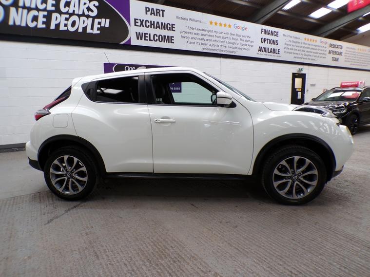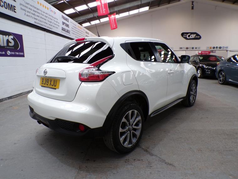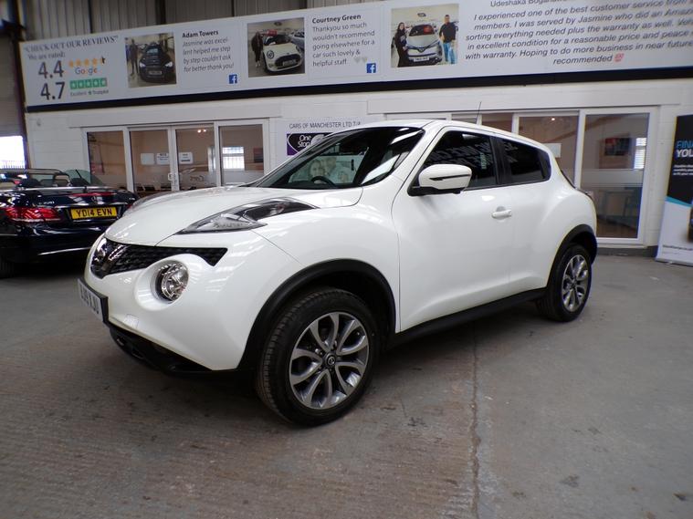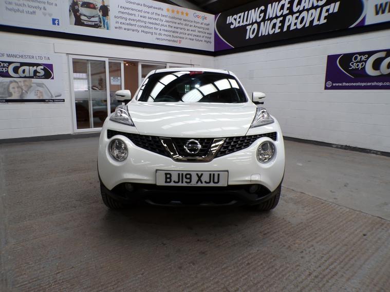This 2019 Nissan Juke Tekna is presented with two keys, six service stamps and a MOT until March 2027 for your peace of mind. This stylish Juke is equipped with a 1.6 litre petrol engine and meets Euro 6 emissions standards. Inside, you'll find comfortable heated front seats and convenient Bluetooth integration for your phone. The Tekna trim also benefits from automatic headlights that activate with a dusk sensor, a colour reversing camera, and a 360 degree around view monitor to assist with parking. It will come with a three month Warranty which includes full roadside assist breakdown cover, provided by a trading standard approved company. For full details of this vehicle and to request a walk around video please give one of our dedicated sales team a call on 01616232251 PLEASE NOTE THAT CURRENTLY NOT ALL CARS ON SITE HAVE BEEN FULLY PREPARED TO SHOWROOM STANDARD. Therefore, appointments are preferred to give us a chance to check the car over prior to your visit. This is not compulsory and should you wish to visit the site without an appointment please just bear in mind the vehicles may still require all or some of their prep work. Thank you in anticipationof your patience. ALL CARS COME WITH AT LEAST A TEN MONTH INDEPENDANT MOT WITH ALL ADVISORIES COMPLETED PRIOR TO COLLECTION. ALL CARS HAVE AN OIL AND FILTER SERVICE (IF ONE IS DUE) PRIOR TO COLLECTION ALL OUR CARS ARE HPI CLEAR PART EXCHANGE WELCOME, VERY COMPETIVE VALUES OFFERED FINANCE OPTIONS ARE AVAILABLE , GREAT RATES OFFERED AND WE ARE FULLY FCA REGULATED, WHY NOT LET US GIVE YOU A QUOTE? CARS CAN BE RESERVED FOR UP TO 5 DAYS FOR £100. THE RESERVATION FEE IS FULLY REFUNDABLE , NO QUESTIONS ASKED OUR CARS ARE PRICE CHECKED DAILY TO ENSURE GREAT PRICES. ALL MAJOR CREDIT / DEBIT CARDS ACCEPTED. WE ARE OPEN 6 DAYS A WEEK (CLOSED ON SUNDAYS) . CUSTOMER SERVICE IS CENTRAL TO OUR ETHOS WE ARE YOUR TRUSTED USED CAR SUPERMARKET, WITH OVER 100 CARS IN STOCK, AND ARE PROUD TO OFFER THE UNIQUE ONE STOP CAR BUYING EXPERIENCE. SELLING NICE CARS TO NICE PEOPLE WE ALSO BUY CARS. SAME DAY TRANSACTIONS. Bluetooth connection, Cruise control, Front parking sensor, Front view camera, Heated front seat, Navigation system, PAS, Park assist camera, Rear parking sensor, Rear wiper, Reverse parking aid, Service indicator, Steering wheel mounted controls, Surround view, Trip computer, Windscreen heating, Audio remote control, Auxiliary input socket, Climate control, Digital radio, Folding rear seats, Front armrest, Front electric windows, Front head restraints, Height adjustable drivers seat, OEM sound system, Radio/CD, Rear electric windows, Rear headrests, Sports seats, Steering wheel rake adjustment, USB/iPod interface, Body coloured bumpers, Door mirrors electrically foldable, Electric door mirrors, Heated door mirrors, LED Foglights, LED Indicator lights, LED daytime running lights, 3x3 point rear seat belts, ABS, Blind spot information, Curtain airbags, Drivers airbag, ESP, Isofix child seat anchor points, Lane departure warning, Passenger airbag, Rear airbags, Side airbags, Traction control, Tyre pressure monitor, Alarm, Immobiliser, Remote central locking, Leather seat trim, Solid Paint, Alloy wheels, Tyre repair kit.