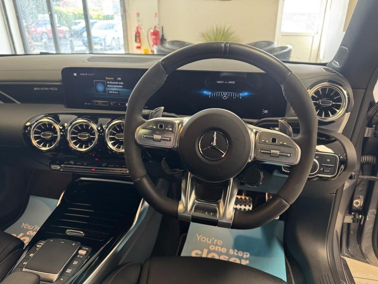 We are pleased to offer this Mercedes-AMG CLA45 S finished in Mountain Grey Metallic, covering 24, 900 miles. This vehicle is in excellent condition and comes with comprehensive service history, 2 keys, and has been carefully prepared by our team at Direct Motors J28. It is also still under manufacturer€™s warranty until September. Specification includes: € AMG CLA45 S / Turbo 4MATIC+ € Leather AMG seats with heated seats, electric adjustment, and extendable leg rests € Full virtual dash, centre touchpad, Apple CarPlay, voice control, handsfree, USB € Satellite navigation / maps € Parking cameras with Park Assist € Cruise control € Bluetooth, DAB & AM radio € Keyless entry & keyless go € Panoramic sunroof, ambient lighting, dual climate control, air conditioning € 2 keys € Comprehensive service history Additional highlights: € 19-inch gloss black alloys with Pirelli P Zero tyres € Red brake callipers with drilled discs all round € Multibeam LED lights € AMG aero kit (spoiler lip, side skirts, diffuser) € Flat-bottom multifunction steering wheel with flappy paddles € Driving modes including Track Mode € Electronic damper control € Valved exhaust € Auto lights, auto wipers, electric park brake, traction control, auto stop/start € Burmester sound system The vehicle has been fully inspected, prepared to a high standard, and is ready to drive away. It drives exceptionally well and represents fantastic value for money. Additional benefits: Low rate finance options available 12 months AA breakdown cover 3 months warranty included Instant valuation on all part exchanges We are a family-run business, conveniently located just off Junction 28 of the M1 in Alfreton, and only a 2-minute walk from the local train station, making us easily accessible. Out of hours enquiries: 01773802192 Viewings and test drives are welcomed€”please contact us to arrange an appointment.. € Keyless entry & keyless go € Cruise control € Driving modes including Track Mode € Automatic gearbox with flappy paddles € Electric park brake € Auto lights € Auto wipers € Dual climate control € Air conditioning € Centre touchpad controller € Voice control € Handsfree calling € USB connectivity € Apple CarPlay € Satellite navigation / maps € Bluetooth connectivity € DAB & AM radio € Full virtual dash / digital cockpit € Auto stop/start, € Leather AMG seats € Heated seats € Electric seats € Extendable leg rests € Flat-bottom multifunction steering wheel € Ambient lighting € Burmester sound system € Panoramic sunroof, € Multibeam LED lights € AMG aero kit (spoiler lip, side skirts, diffuser) € Mountain Grey Metallic paint, € Parking cameras € Park Assist € Traction control € Electronic damper control € Drilled brake discs all round € 4MATIC+ all-wheel drive system, € Keyless entry system € 2 keys, € Mercedes-AMG CLA45 S model € Turbocharged AMG performance model € Valved performance exhaust, € 19-inch gloss black AMG alloy wheels € Pirelli P Zero tyres € Red brake callipers.