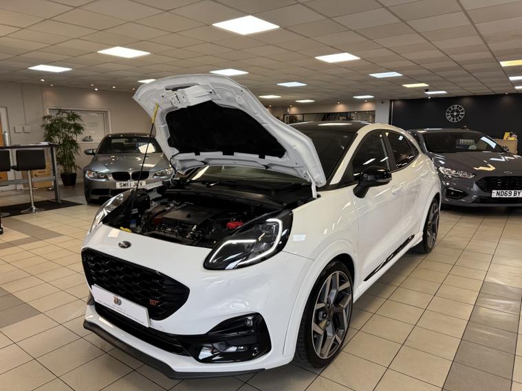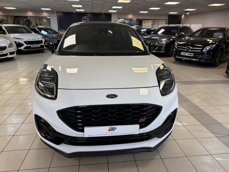 We are pleased to offer this 2021 Ford Puma ST finished in Frozen White, covering 28, 000 miles. This vehicle is in excellent condition and comes with 5 services recorded (last done by ourselves), 2 keys, and has been carefully prepared by our team at Direct Motors J28. Specification includes: € Puma ST performance model € Half leather / half Alcantara ST Recaro seats, heated seats and heated steering wheel (Winter Pack) € B&O premium sound system infotainment € Satellite navigation (Map/Nav) € Park Assist, Front & Rear Sensors € Cruise control € Bluetooth, FM, and DAB radio, plus Apple CarPlay & Android Auto € Keyless entry, Keyless Go, and handsfree with voice control € 19-inch diamond cut alloy wheels with red brake callipers € Extended panoramic roof, privacy glass, and power tailgate € Power-folding mirrors € Flat-bottom leather multifunction steering wheel € Drive modes €“ Normal, Sport, Race, Eco € Traction control and auto stop/start € Auto lights € Manual gearbox € 12V socket, USB, and wireless charging € Air conditioning € Heated front windscreen € 2 keys included € 5 services recorded €“ last carried out by ourselves MOT: 12 months MOT until 29th March 2027. The vehicle has been fully inspected, prepared to a high standard, and is ready to drive away. It drives exceptionally well and represents fantastic value for money. Additional benefits: Low rate finance options available 12 months AA breakdown cover 3 months warranty included Instant valuation on all part exchanges We are a family-run business, conveniently located just off Junction 28 of the M1 in Alfreton, and only a 2-minute walk from the local train station, making us easily accessible. Out of hours enquiries: 01773802192 Viewings and test drives are welcomed€”please contact us to arrange an appointment.. € Keyless entry € Keyless Go € Cruise control € Park assist € Handsfree € Voice control € Auto lights € Power tailgate € Auto stop start € Drive modes €“ Normal / Sport / Race / Eco € Multifunction leather steering wheel € Flat bottom steering wheel € Air conditioning (AC) € Heated seats (Winter Pack) € Heated steering wheel (Winter Pack) € Heated front windscreen € 12V socket € USB connection € Wireless charging, € Half leather / half Alcantara ST Recaro seats € B&O sound system € Map / Navigation system € Bluetooth € FM radio € DAB radio € Apple CarPlay € Android Auto, € Powerfolding mirrors € Extended panoramic roof € Privacy glass, € Traction control € Park assist € Auto lights, € Keyless entry € Keyless Go € 2 keys, € 2021 Ford Puma ST € Frozen White, € 19 inch diamond cut alloy wheels € Red brake callipers.