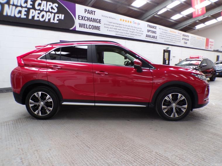 This 2018 Mitsubishi Eclipse Cross T 4 boasts two keys and a full service history, ensuring its excellent provenance, and benefits from an MOT valid until March 2027. This Euro 6 compliant 1.5 litre petrol model offers a refined driving experience. Stay connected and entertained with seamless integration for both Apple CarPlay and Android Auto, alongside Bluetooth connectivity for music streaming. The vehicle also features dusk sensing headlights that automatically illuminate, and advanced LED headlights with auto levelling for optimal visibility in all conditions. It will come with a three month Warranty which includes full roadside assist breakdown cover, provided by a trading standard approved company. For full details of this vehicle and to request a walk around video please give one of our dedicated sales team a call on 01616232251 PLEASE NOTE THAT CURRENTLY NOT ALL CARS ON SITE HAVE BEEN FULLY PREPARED TO SHOWROOM STANDARD. Therefore, appointments are preferred to give us a chance to check the car over prior to your visit. This is not compulsory and should you wish to visit the site without an appointment please just bear in mind the vehicles may still require all or some of their prep work. Thank you in anticipationof your patience. ALL CARS COME WITH AT LEAST A TEN MONTH INDEPENDANT MOT WITH ALL ADVISORIES COMPLETED PRIOR TO COLLECTION. ALL CARS HAVE AN OIL AND FILTER SERVICE (IF ONE IS DUE) PRIOR TO COLLECTION ALL OUR CARS ARE HPI CLEAR PART EXCHANGE WELCOME, VERY COMPETIVE VALUES OFFERED FINANCE OPTIONS ARE AVAILABLE , GREAT RATES OFFERED AND WE ARE FULLY FCA REGULATED, WHY NOT LET US GIVE YOU A QUOTE? CARS CAN BE RESERVED FOR UP TO 5 DAYS FOR £100. THE RESERVATION FEE IS FULLY REFUNDABLE , NO QUESTIONS ASKED OUR CARS ARE PRICE CHECKED DAILY TO ENSURE GREAT PRICES. ALL MAJOR CREDIT / DEBIT CARDS ACCEPTED. WE ARE OPEN 6 DAYS A WEEK (CLOSED ON SUNDAYS) . CUSTOMER SERVICE IS CENTRAL TO OUR ETHOS WE ARE YOUR TRUSTED USED CAR SUPERMARKET, WITH OVER 100 CARS IN STOCK. 12v Socket, Bluetooth Preparation (Phone), Climate Control, Cruise Control, Cupholders, Electric Seat Adjustment, Front Electric Windows, Heated Front Seats, Height Adjustable Drivers Seat, Panoramic Roof, Privacy Glass, Split Rear Seats, Steering Column - Adjustable, USB and AUX, 12v Socket - Rear, DAB Radio, Leather Steering Wheel, Power Assisted Steering (PAS), Roof Rails, Anti Lock Brakes, Auto On Headlights, Driver Airbag, Electronic Brake Assistance (EBA), Electronic Stability Programme (ESP), Front Fog Lights, Front Parking Sensor, ISOFIX, Rain Sensitive Wipers, Speed Limiter, Alarm, Keyless Central Locking, Leather Upholstery, Solid Paint, Alloy Wheels.