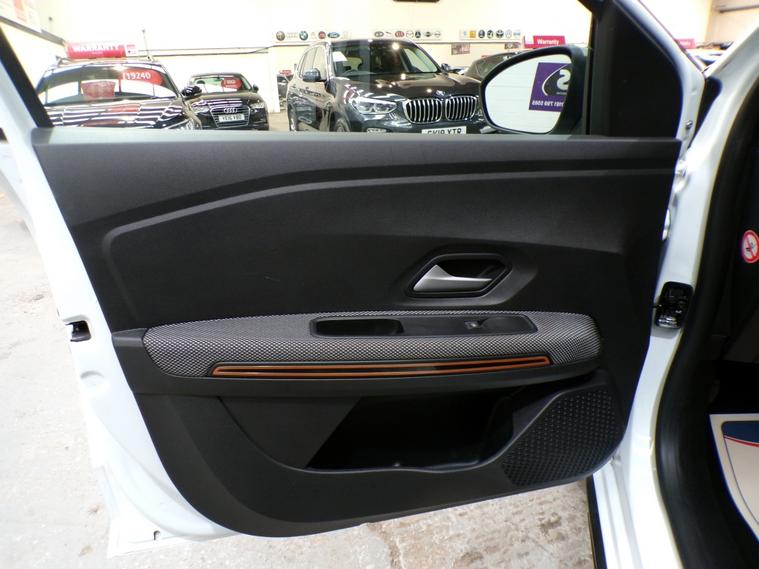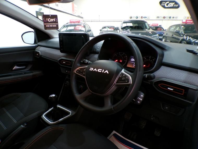 This 2023 Dacia Sandero Stepway TCe Expression is a superb example, having had only one owner since new, with two keys and three service stamps. This Euro 6 compliant 1.0 litre petrol model offers a compelling blend of practicality and modern convenience. You'll appreciate the distinctive LED Y shape Dacia lighting signature, which includes LED headlights for clear visibility. Inside, the Expression trim provides manual air conditioning to keep you comfortable, and the 8in media display with DAB radio is compatible with both Android Auto and Apple CarPlay, alongside Bluetooth connectivity for seamless audio streaming and calls. The Sandero Stepway Stepway excels with its generous boot space, making it ideal for carrying luggage, shopping, or sports equipment. Parking is made easier thanks to the rear parking sensors and rear view camera, offering enhanced awareness when manoeuvring. These features, combined with the efficient 1.0L engine and the single owner provenance, position this Sandero Stepway as a well maintained and practical choice for everyday driving. It will come with a three month Warranty which includes full roadside assist breakdown cover, provided by a trading standard approved company. For full details of this vehicle and to request a walk around video please give one of our dedicated sales team a call on 01616232251 PLEASE NOTE THAT CURRENTLY NOT ALL CARS ON SITE HAVE BEEN FULLY PREPARED TO SHOWROOM STANDARD. Therefore, appointments are preferred to give us a chance to check the car over prior to your visit. This is not compulsory and should you wish to visit the site without an appointment please just bear in mind the vehicles may still require all or some of their prep work. Thank you in anticipationof your patience. ALL CARS COME WITH AT LEAST A TEN MONTH INDEPENDANT MOT WITH ALL ADVISORIES COMPLETED PRIOR TO COLLECTION. ALL CARS HAVE AN OIL AND FILTER SERVICE (IF ONE IS DUE) PRIOR TO COLLECTION ALL OUR CARS ARE HPI CLEAR PART EXCHANGE WELCOME, VERY COMPETIVE VALUES OFFERED FINANCE OPTIONS ARE AVAILABLE , GREAT RATES OFFERED.