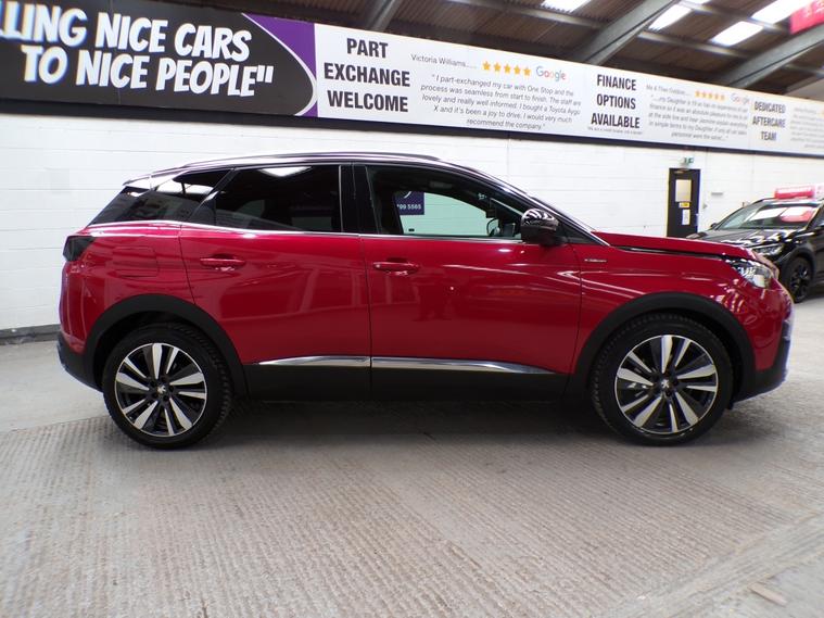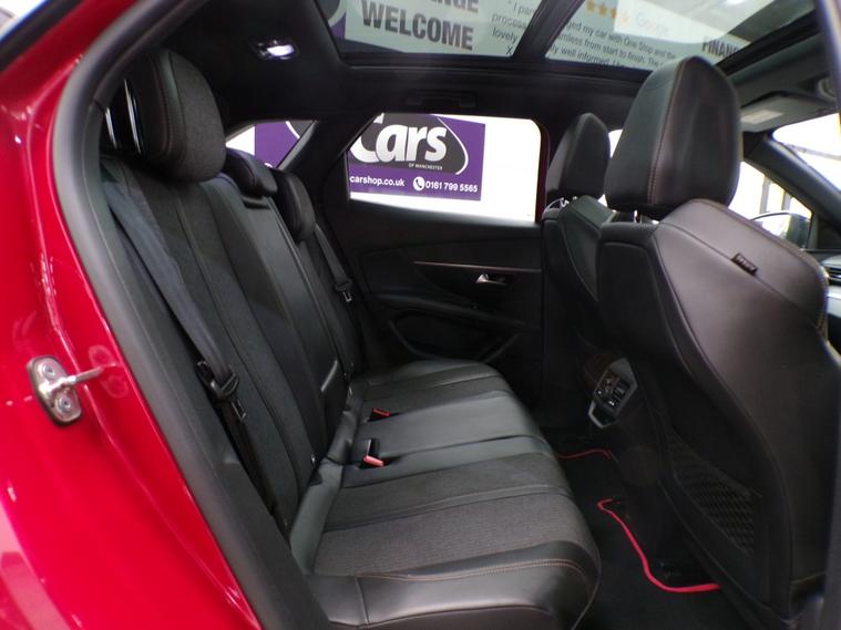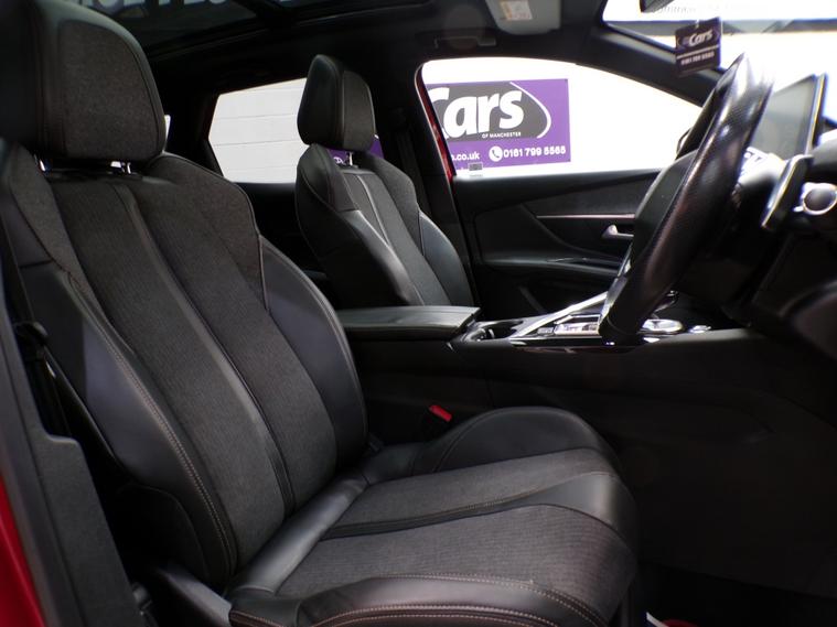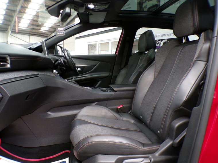 This 2018 Peugeot 3008 BlueHDi GT Line Premium boasts exceptionally low mileage for its age, having covered just 49, 552 miles. This Euro 6 compliant model features a 1.5 litre diesel engine and comes with two keys, three service stamps and a 12 month MOT for your peace of mind. Inside, you'll find the sophisticated Blue Ambient Lighting illuminating the Head Up Instrument Panel, complete with a Head Up Display. The PEUGEOT Open and Go System offers keyless entry, while front and rear parking sensors, along with parking assistance, make manoeuvring effortless. Safety is enhanced with the Safety Plus Pack, including Blind Spot Assistance, and the vehicle is equipped with Full LED Headlights. This Peugeot 3008 stands out with its impressive fuel economy, achieving a remarkable 56 miles per gallon, which is better than many similar vehicles. Its low CO2 emissions also contribute to its efficiency, and it falls into a low insurance group, making it an economical choice to own and run. Furthermore, the generous boot space ensures you have ample room for all your luggage and shopping needs, further enhancing its practicality for everyday use. It will come with a three month Warranty which includes full roadside assist breakdown cover, provided by a trading standard approved company. For full details of this vehicle and to request a walk around video please give one of our dedicated sales team a call on 01616232251 PLEASE NOTE THAT CURRENTLY NOT ALL CARS ON SITE HAVE BEEN FULLY PREPARED TO SHOWROOM STANDARD. Therefore, appointments are preferred to give us a chance to check the car over prior to your visit. This is not compulsory and should you wish to visit the site without an appointment please just bear in mind the vehicles may still require all or some of their prep work. Thank you in anticipationof your patience. ALL CARS COME WITH AT LEAST A TEN MONTH INDEPENDANT MOT WITH ALL ADVISORIES COMPLETED PRIOR TO COLLECTION. ALL CARS HAVE AN OIL AND FILTER SERVICE (IF ONE IS DUE) PRIOR TO COLLECTION ALL OUR CARS ARE HPI CLEAR PART EXCHANGE WELCOME. Adaptive steering, Cruise control, Digital Instrument Cluster, Electric boot/tailgate, Exterior temperature display, Head up display, Keyless go, Multifunction steering wheel, Navigation system, Trip computer, Voice control for navigation system, Windscreen heating, 12V power outlet in luggage area, Audio remote control, Centre console media control touchpad, Coat hook, Digital radio, Front head restraints, Front interior 12V power outlet, OEM sound system, Radio, Rear armrest, Rear headrests, Rear interior 12V power outlet, Steering wheel rake adjustment, Steering wheel reach adjustment, USB input, mp3 player, Body coloured bumpers, Boot spoiler, Fixed panoramic glass roof, Opening panoramic glass roof, Roof rails, Alarm, Central locking, Immobiliser, Remote central locking, Partial leather seat upholstery, Solid Paint, Alloy wheels, Locking wheel nuts, Space saver spare wheel, Spare wheel.