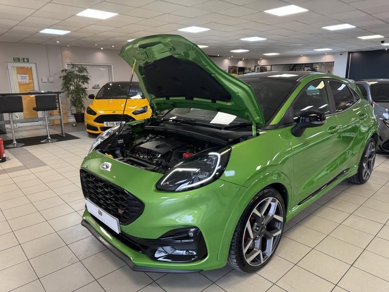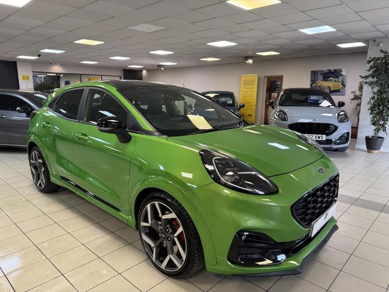 We are pleased to offer this 2021 Ford Puma ST finished in Mean Green, covering 19, 000 miles. This vehicle is in excellent condition and comes with 12 months MOT (due 29/04/2027), 2 keys, and has been carefully prepared by our team at Direct Motors J28. Specification includes: Puma ST Half leather & Alcantara ST Recaro sports seats with heated seats and heated steering wheel (Winter Pack) Ford SYNC 3 infotainment system with B&O sound system Satellite navigation (Nav/Map) Front & rear parking sensors with park assist Cruise control Bluetooth / DAB / FM radio Keyless entry & keyless go (push button start) Digital dashboard display Apple CarPlay & Android Auto Wireless charging pad & USB connectivity Flat-bottom multifunction steering wheel with voice command Drive modes: Eco / Normal / Sport / Race Track Auto lights & auto stop/start Air conditioning Power folding mirrors Privacy glass & Black Pack styling 19-inch diamond cut alloy wheels with Michelin Pilot Sport 4 tyres Red brake callipers Traction control 12V power outlet Handsfree connectivity 2 keys 12 months MOT included and 4 services The vehicle has been fully inspected, prepared to a high standard, and is ready to drive away. Additional benefits: Low rate finance options available 12 months AA breakdown cover 3 months warranty included Instant valuation on all part exchanges We are a family-run business, conveniently located just off Junction 28 of the M1 in Alfreton, and only a 2-minute walk from the local train station, making us easily accessible. Out of hours enquiries: 01773802192 Viewings and test drives are welcomed€”please contact us to arrange an appointment..