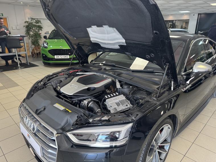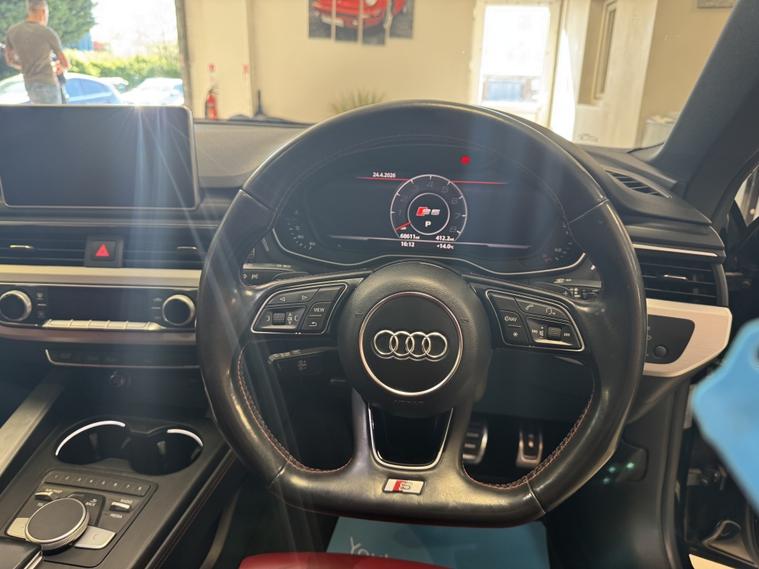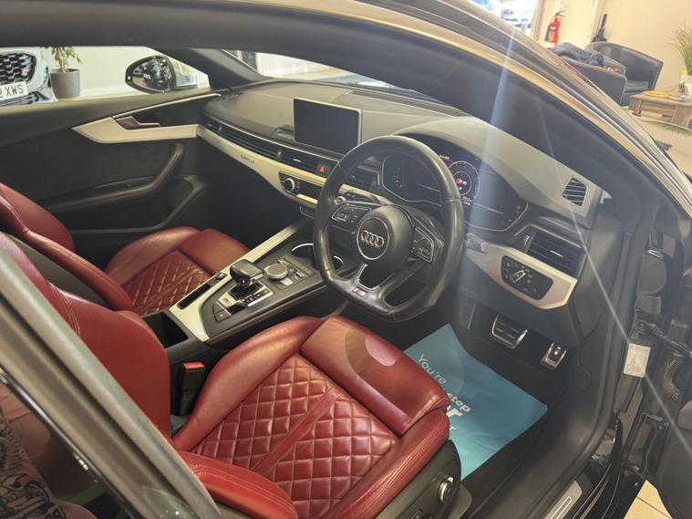 We are pleased to offer this 2018 Audi S5 finished in Mythos Black, covering 68, 000 miles. This vehicle is in excellent condition and comes with great service history (a lot being Audi main dealer), 2 keys, and has been carefully prepared by our team at Direct Motors J28. Specification includes: € S5 trim level € Red leather interior with heated seats € Infotainment system with FM/DAB, USB & AUX € Satellite navigation (nav/map) € Front and rear parking sensors with park assist € Cruise control € Bluetooth hands-free with voice command € Keyless go € 19-inch diamond cut alloys with red callipers € 2 keys € Great service history (a lot being Audi main dealer) The vehicle has been fully inspected, prepared to a high standard, and is ready to drive away. It drives exceptionally well and represents fantastic value for money. Additional benefits: Low rate finance options available 12 months AA breakdown cover 3 months warranty included Instant valuation on all part exchanges We are a family-run business, conveniently located just off Junction 28 of the M1 in Alfreton, and only a 2-minute walk from the local train station, making us easily accessible. Out of hours enquiries: 01773802192 Viewings and test drives are welcomed€”please contact us to arrange an appointment..