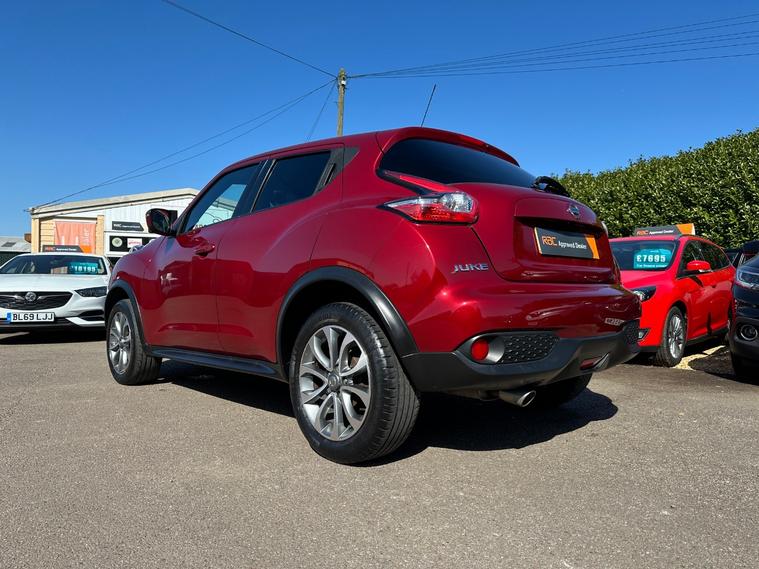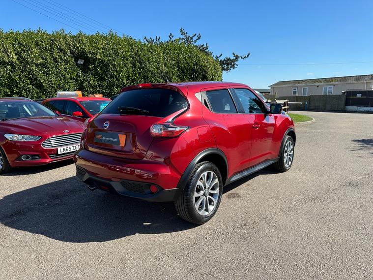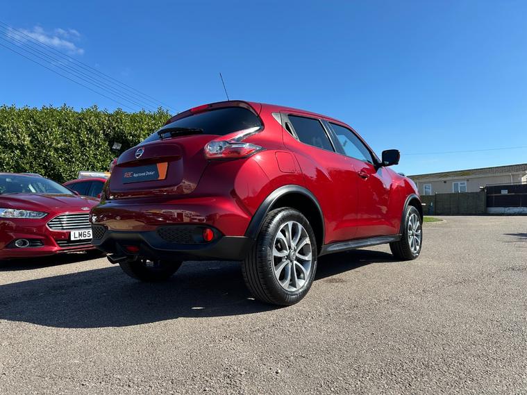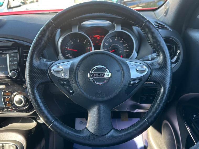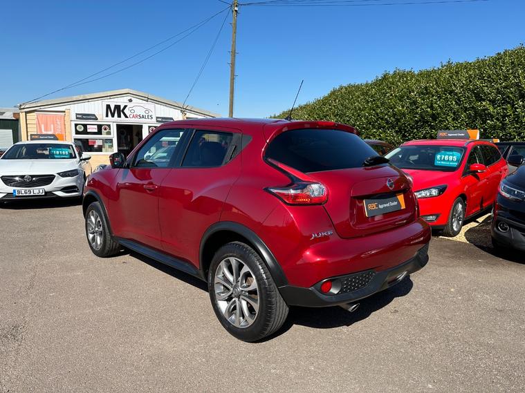 MK Car Sales are delighted to offer for sale this Nissan Juke Tekna 1.5 dCi. Finished in Magnetic Red with a Full Black Leather Interior. This ideal family SUV benefits from Satellite Navigation, Bluetooth, Digital Radio and Air Conditioning. Additionally this car also benefits from Dusk Sensing Lights, Rain Sensing Wipers and is ULEZ Compliant! Please follow the link for a walk around video of this Nissan Juke https:/ dealer's website Available from a large panel of exclusive lenders all credit history welcome! We welcome any car in Part Exchange! We also offer a complimentary 6 month RAC Warranty and 82 point RAC pre-sale inspection with all of our cars!