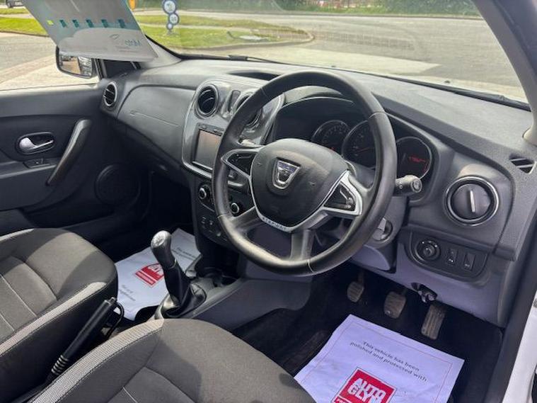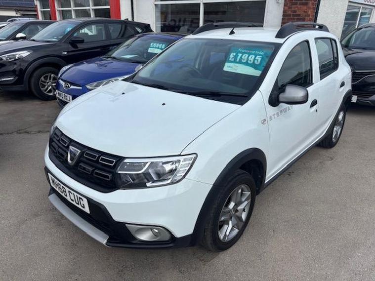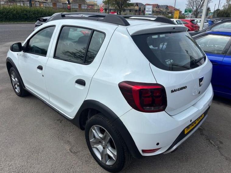 DACIA SANDERO STEPWAY 0.9 TCE COMFORT FINISHED IN WHITE WITH CONTRASTING BLACK CLOTH SEATING WITH WHITE STITCHING REMOTE CENTRAL LOCKING POWER STEERING ELECTRIC WINDOWS ELECTRIC MIRRORS TOUCHSCREEN MEDIA WITH NAVIGATION USB AND BLUETOOTH AIR CONDITIONING CRUISE CONTROL FRONT FOG LIGHTS FRONT TO REAR ROOF BARS AND REAR PARKING SENSORS