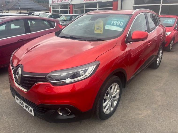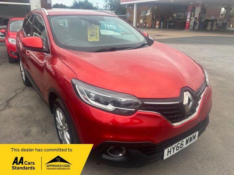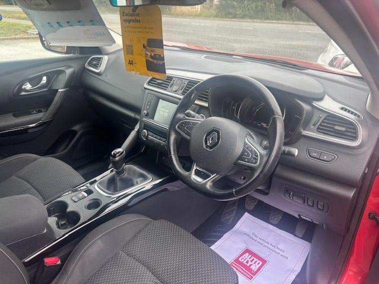 RENAULT KADJAR 1.2 TCE DYNAMIQUE NAV FINISHED IN CHERRY RED METALLIC WITH CONTRASTING BLACK CLOTH SEATING REMOTE CENTRAL LOCKING POWER STEERING ELECTRIC WINDOWS ELECTRIC FOLDING MIRRORS AIR CONDITIONING CRUISE CONTROL SPEED LIMITER TOUCHSCREEN MEDIA WITH BLUETOOTH USB AND NAVIGATION ALLOY WHEELS FRONT FOG LIGHTS AND REAR PARKING SENSORS